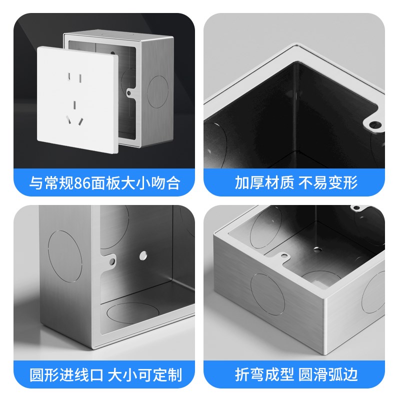 86型不锈钢明盒暗盒插座面板加厚金属明装底盒开关底盒接线盒墙壁