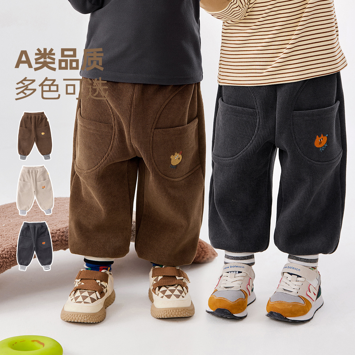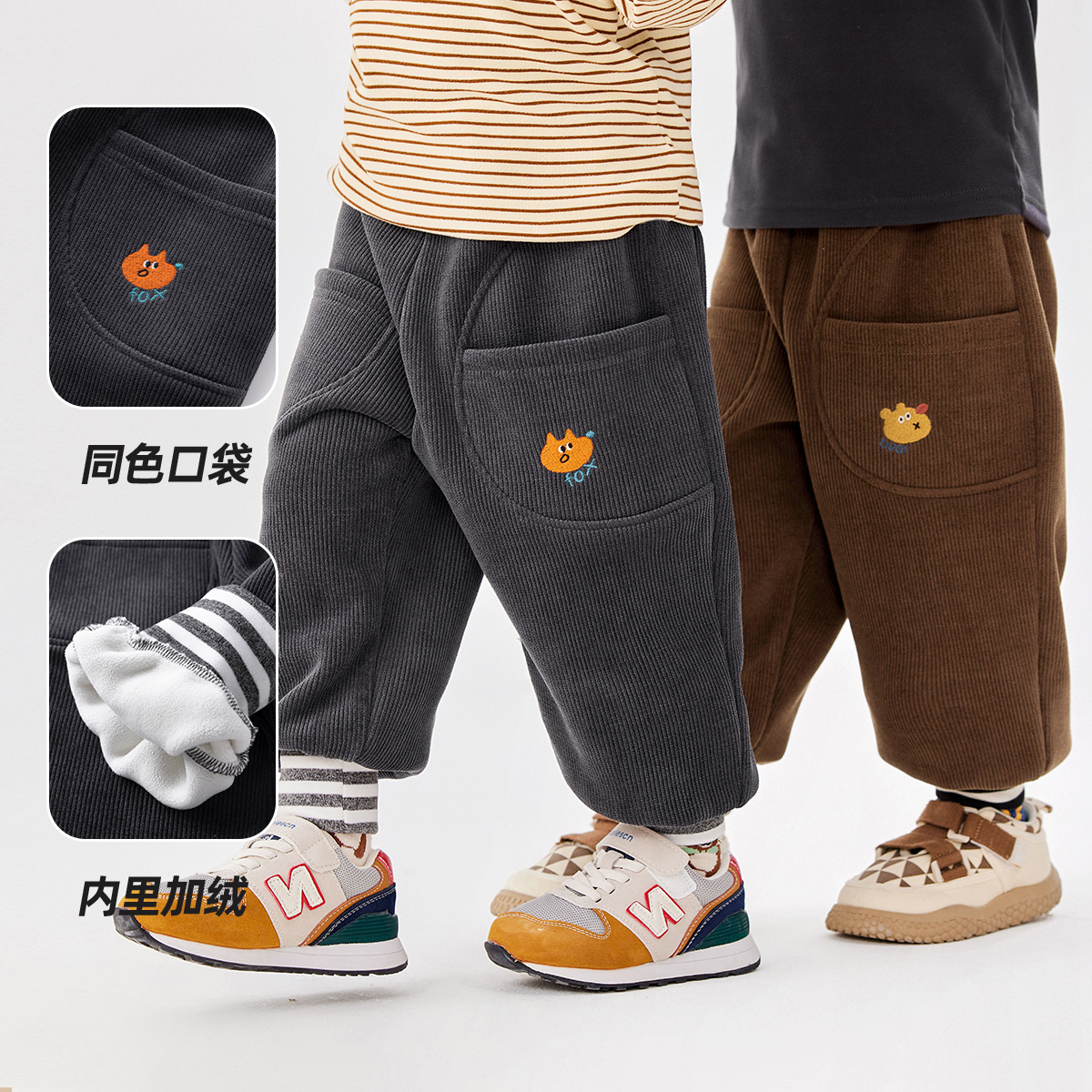 宝宝一体绒束脚运动裤儿童灯芯绒裤子男童冬季休闲裤女童加厚长裤