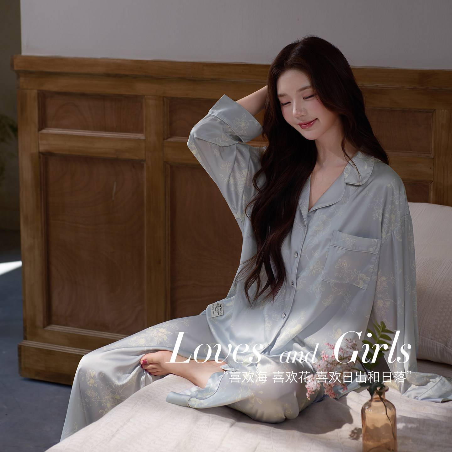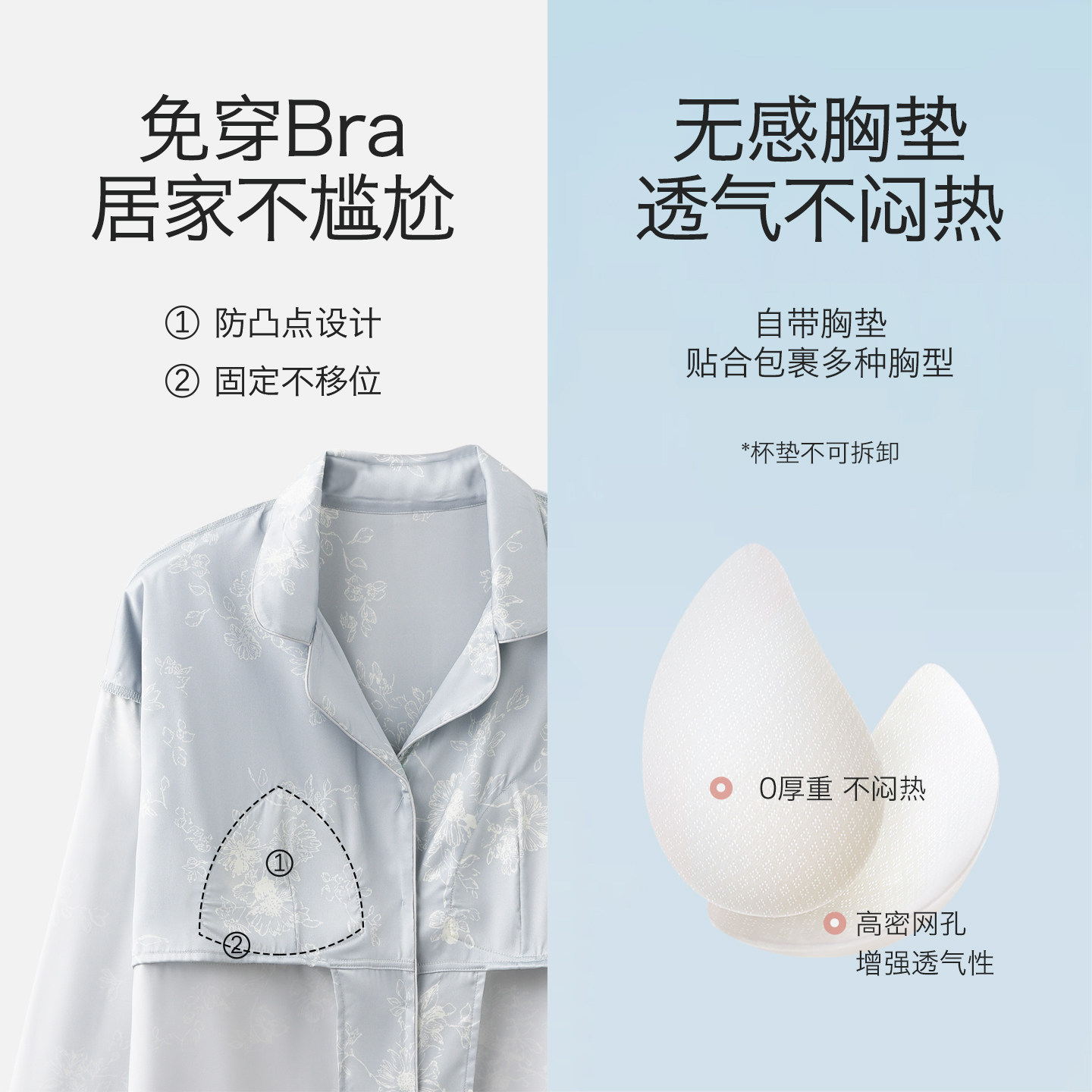 思莉太太冰丝睡衣女款长袖带胸垫新中式国风贵妇感春夏季家居服