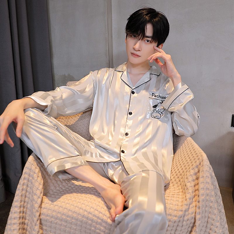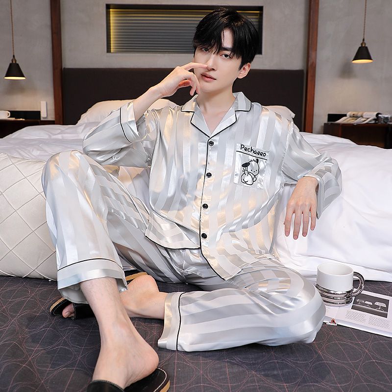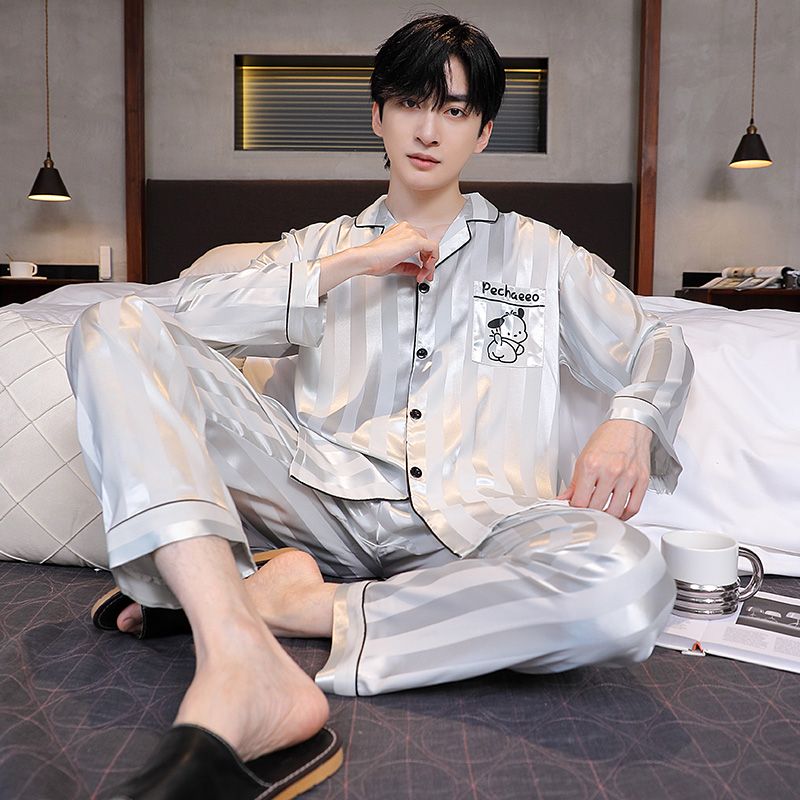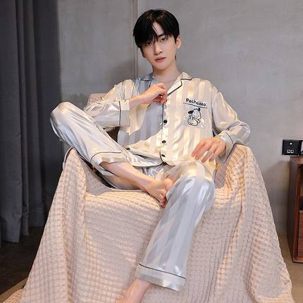 睡衣男士夏季2025新款冰丝春秋款长袖青少年男生加大码家居服套装