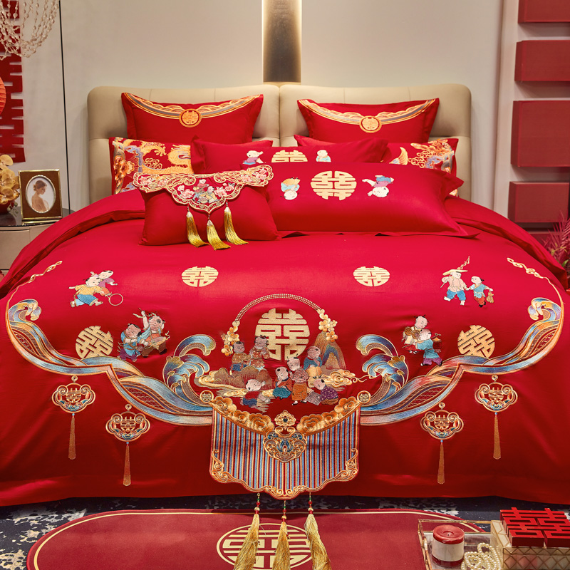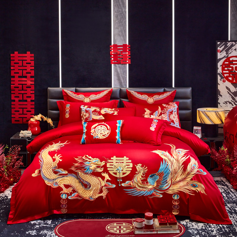 高档140支婚庆四件套大红龙凤纯棉结婚全棉新婚房嫁礼床上六件套4