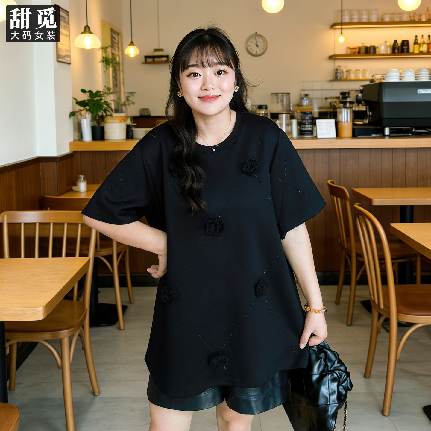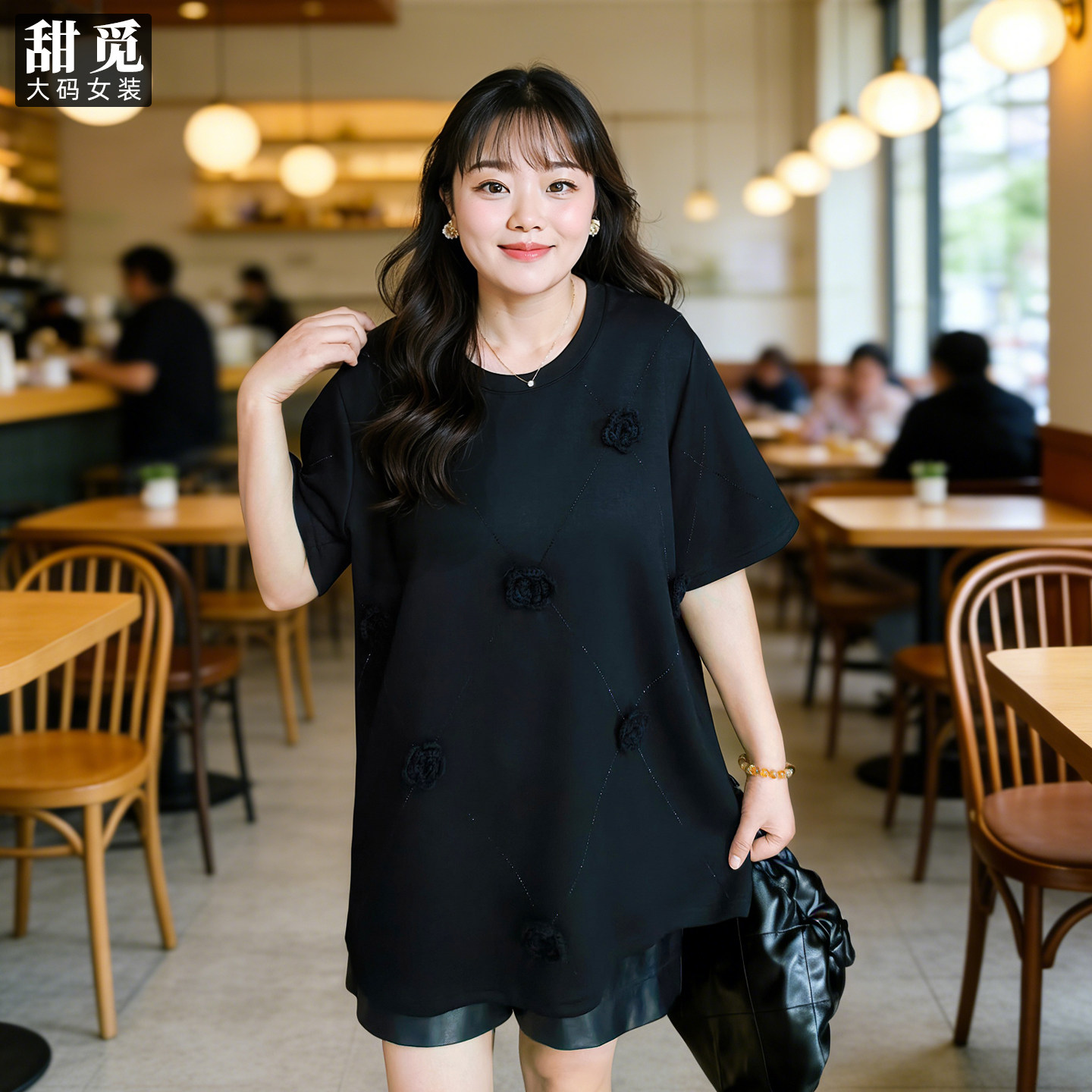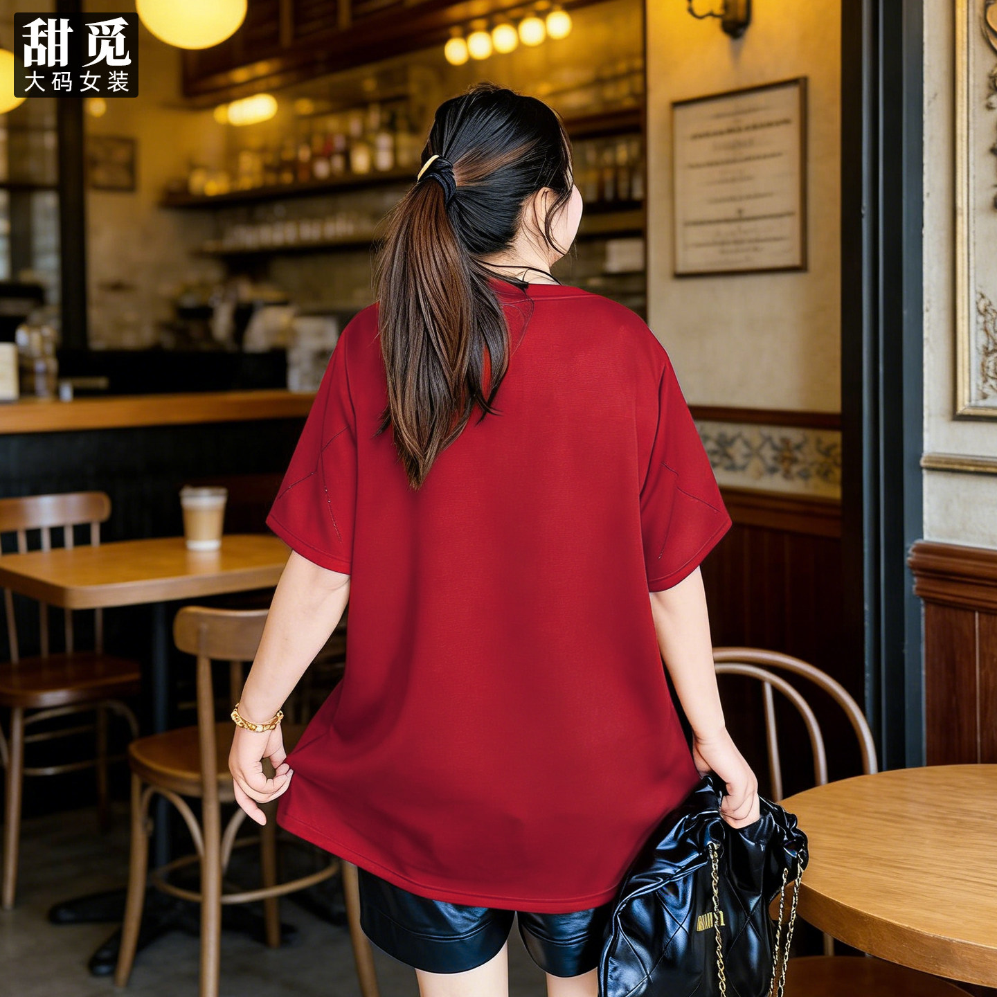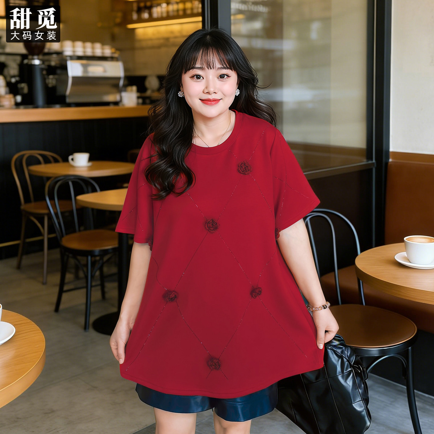 甜觅特大码女装春夏装胖mm300斤洋气宽松中长款短袖新年红色卫衣