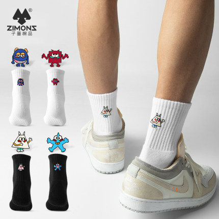 [几何怪]子墨棉品袜子男士中筒秋冬季纯棉纱线毛巾底卡通可爱男生