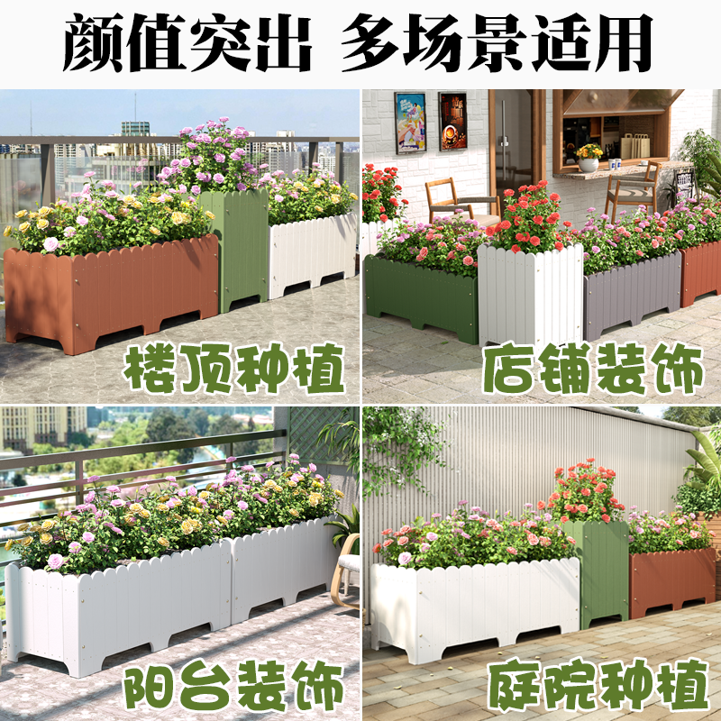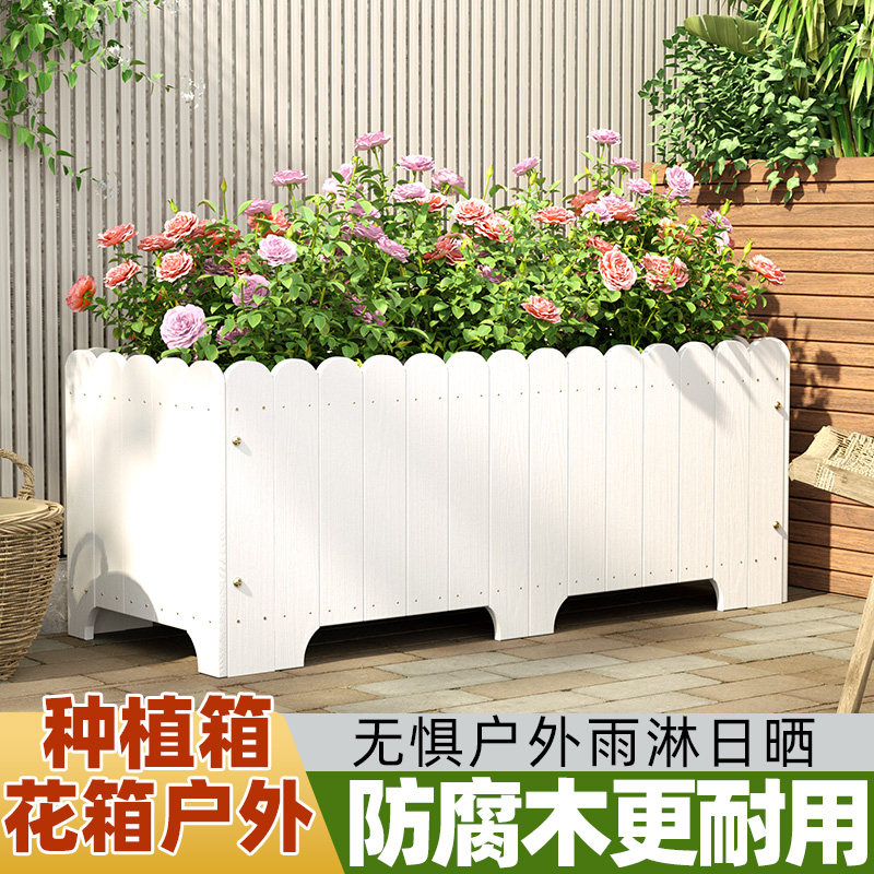 户外花箱种植箱庭院长方形防腐木花槽室外花园大号阳台白色花盆
