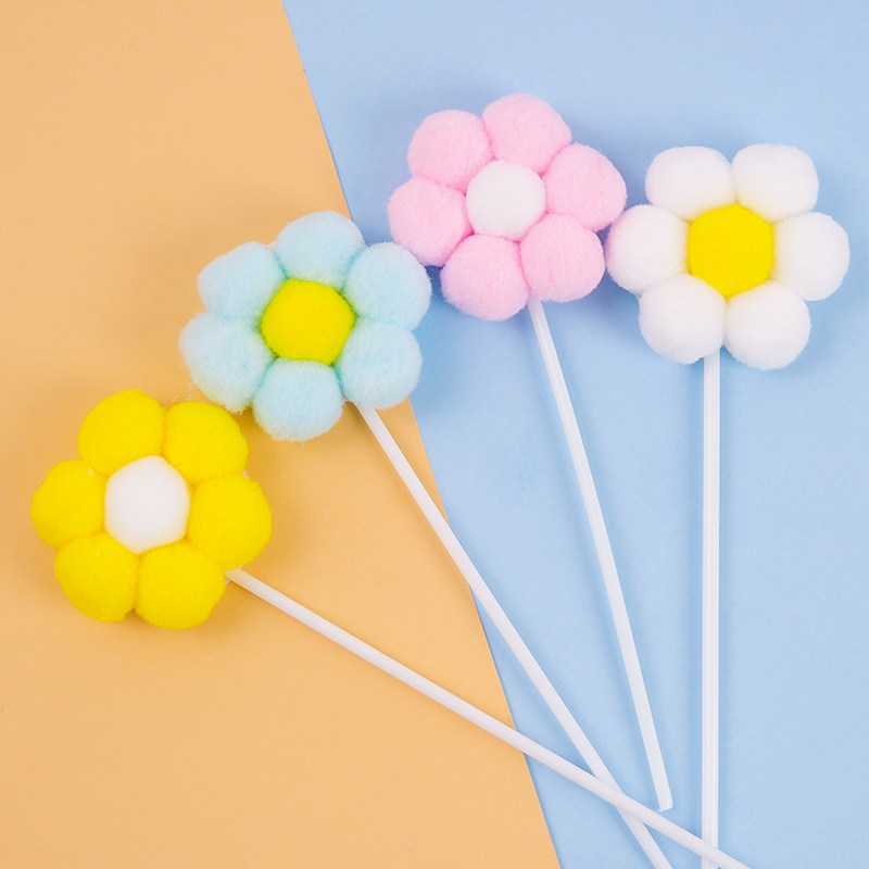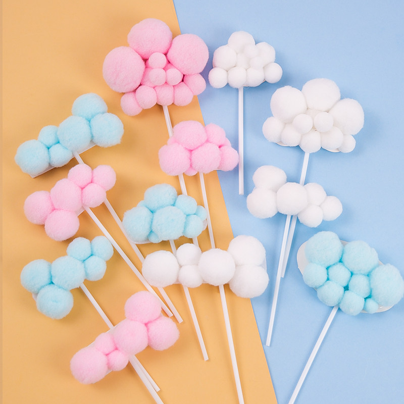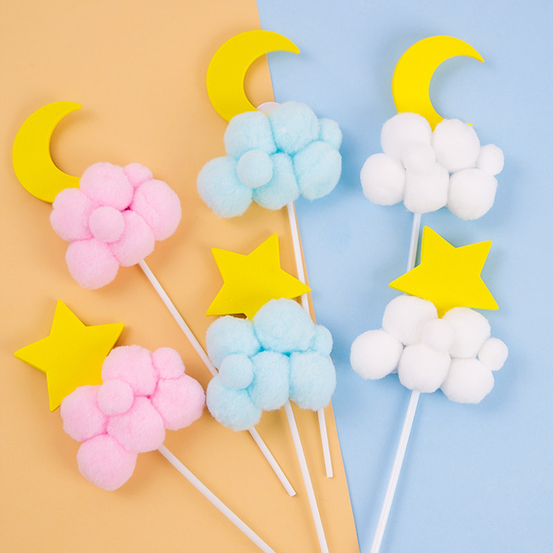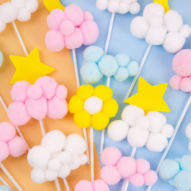白色云朵生日蛋糕装饰插件毛球棉花月亮白云彩虹插牌甜品烘焙装扮