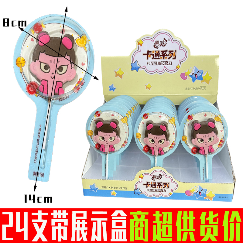 儿童创意可爱卡通哪吒造型巧克力棒棒糖整箱批发小孩趣味分享零食