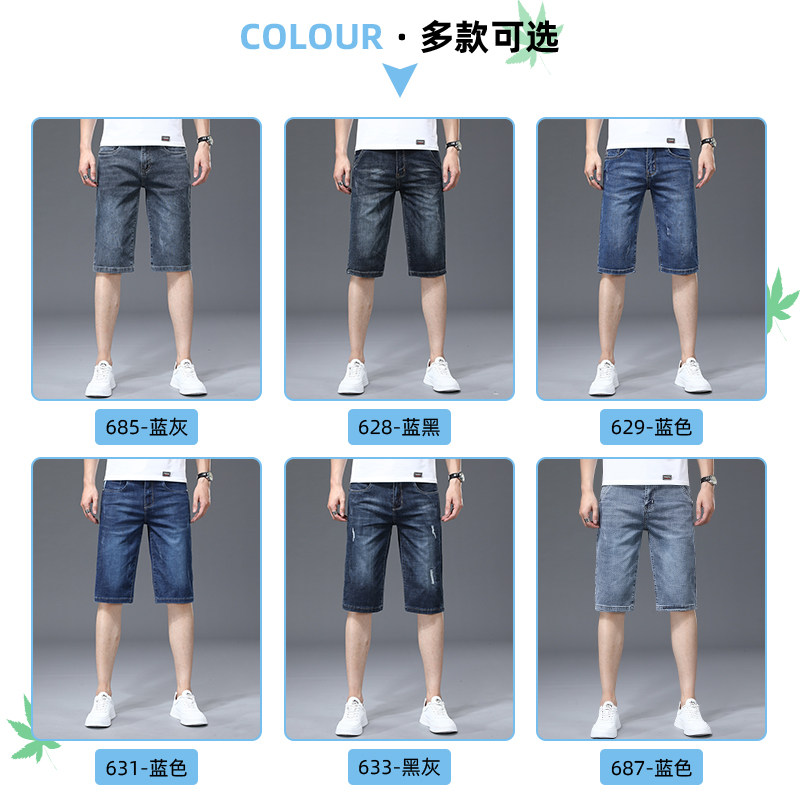 2021年新款牛仔短裤男夏季薄款五分裤男士七分牛仔裤潮牌中裤裤子