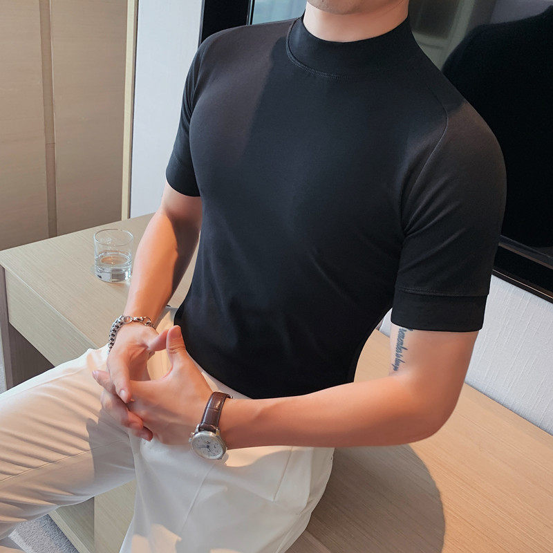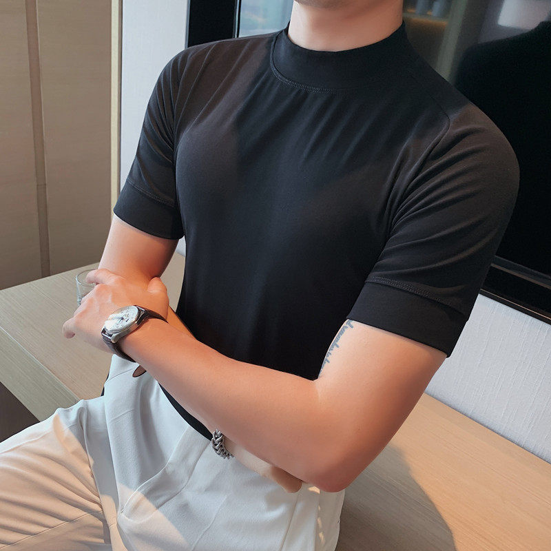 秋冬半高领短袖韩版打底衫青年