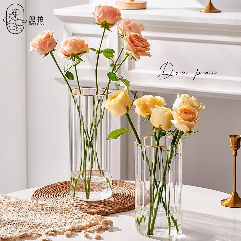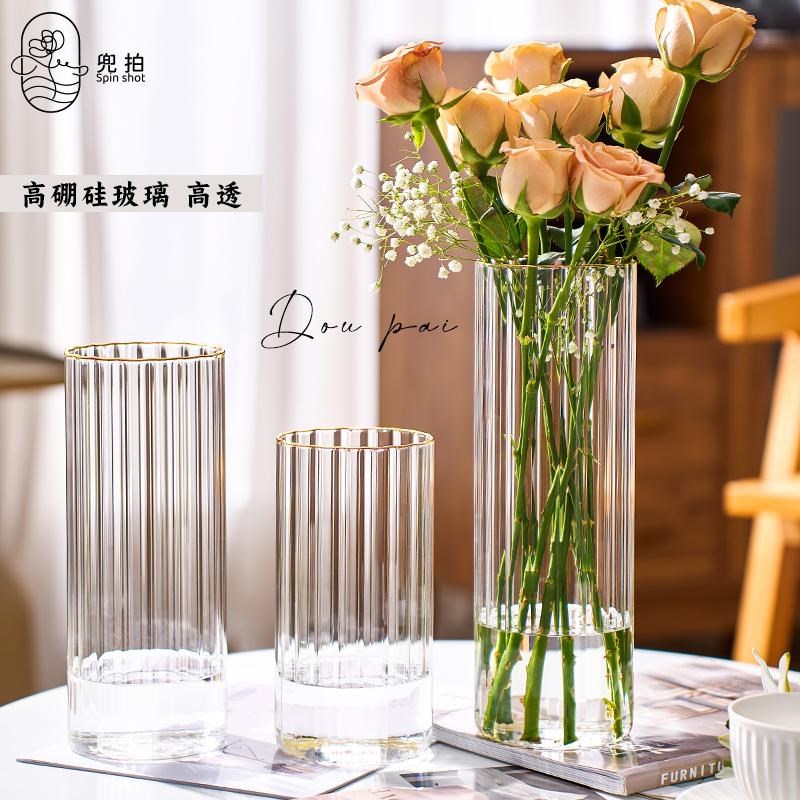 简约现代b轻奢高级感透明玻璃花瓶水养富贵竹百合客厅餐桌插花花
