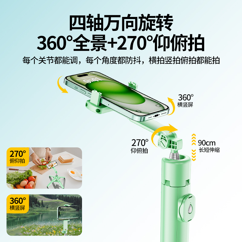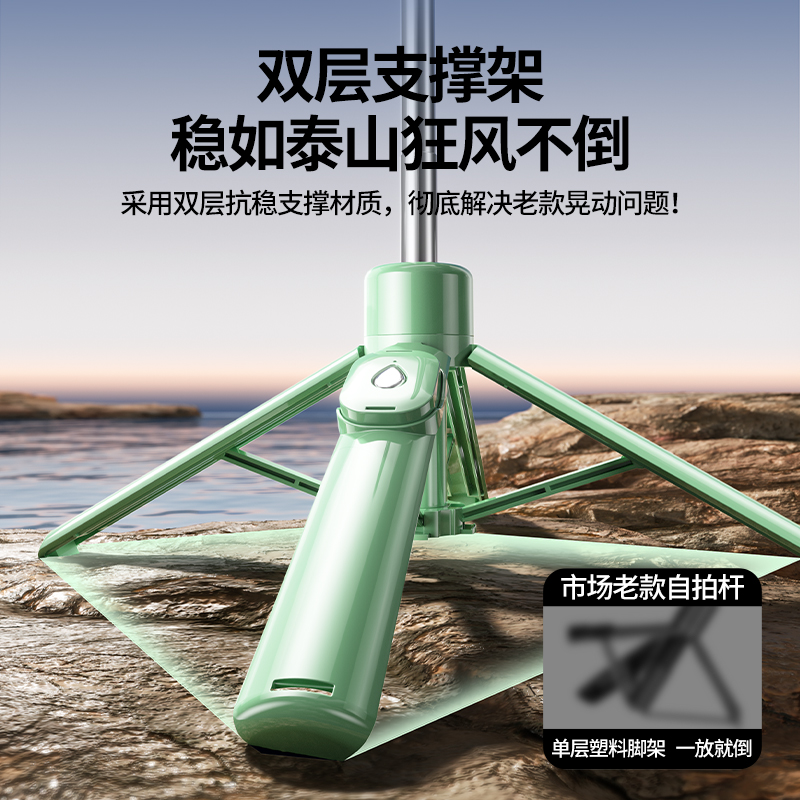 2025新款迷你自拍杆旅游便携式三脚架通用手机拍照伸缩神器360度旋转手持防抖稳定演唱会蓝牙直播落地支架