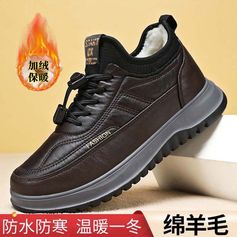 2025冬季加绒加厚老北京棉鞋保暖绵羊毛爸爸鞋皮面防水防滑雪地靴