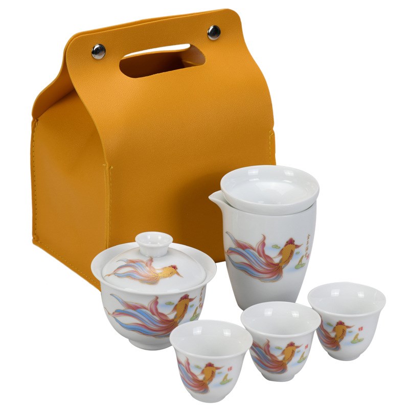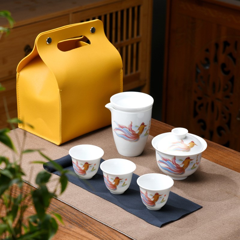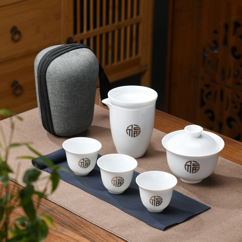 便携式户外旅行茶具套装实用陶瓷功夫盖碗露营整套商务小礼品