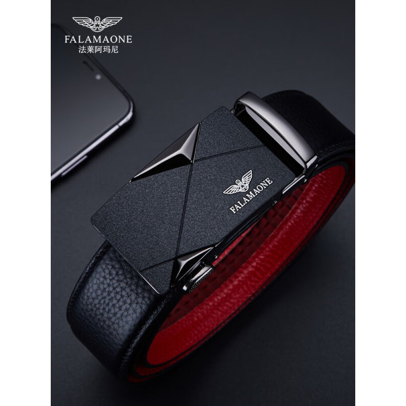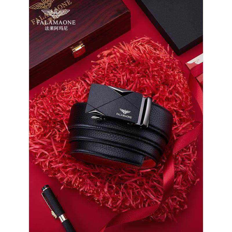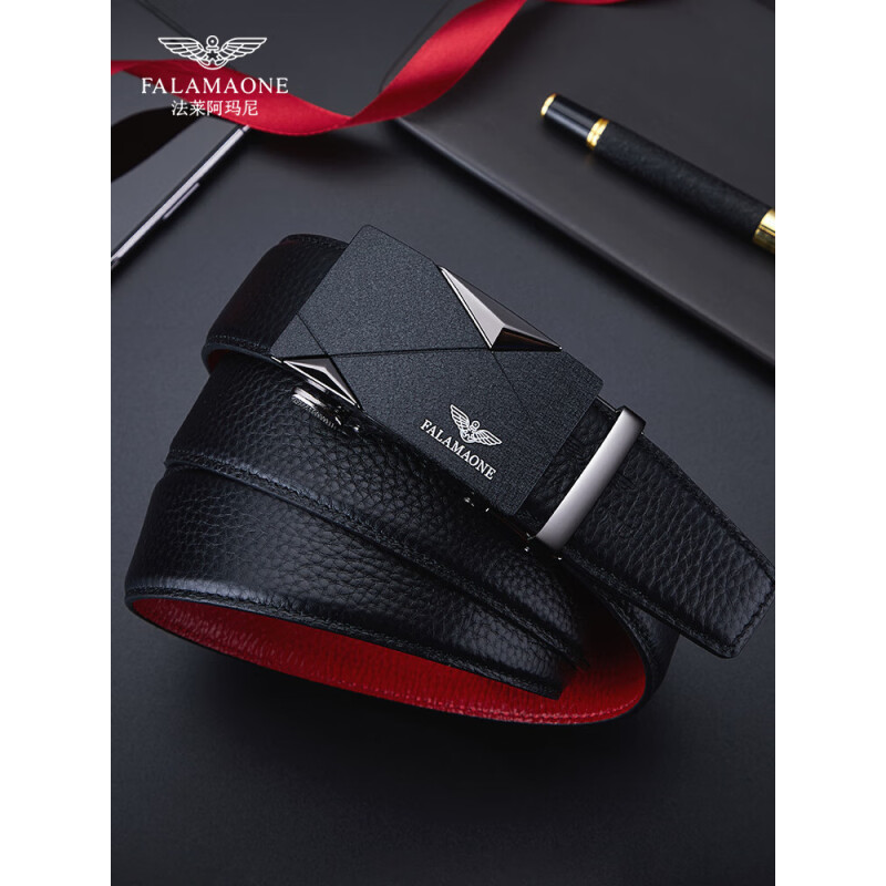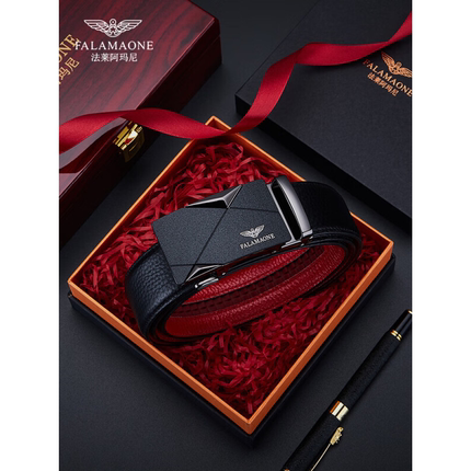 法莱阿玛尼红皮带男真皮情人节本命年男士腰带牛皮裤带