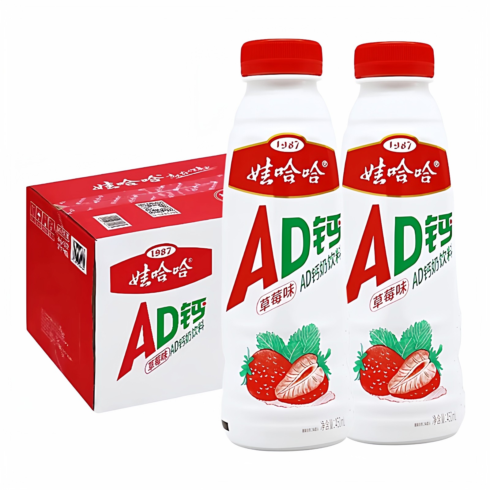 娃哈哈AD钙奶混合味450ml*15瓶原味草莓味水蜜桃味饮品酸奶乳酸菌