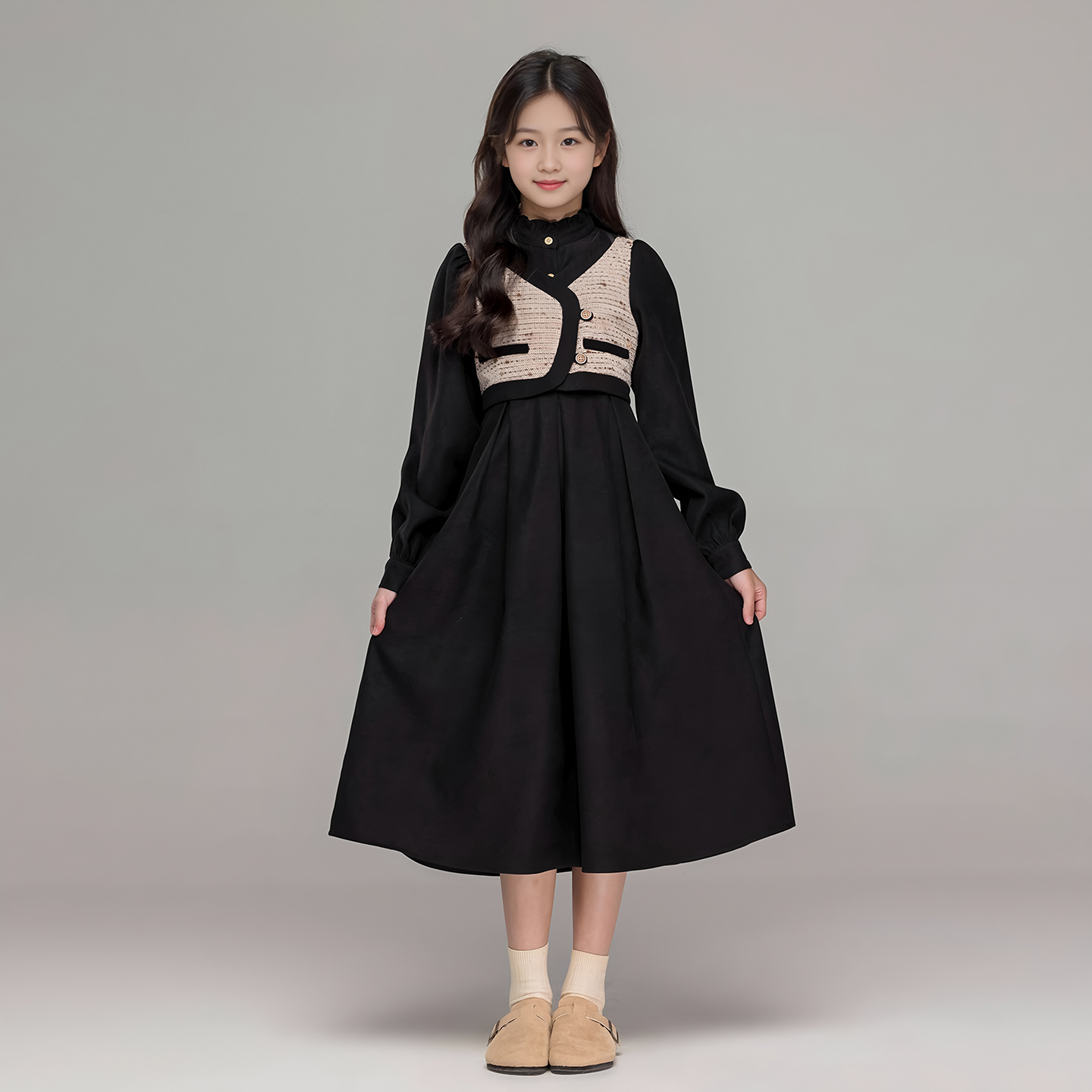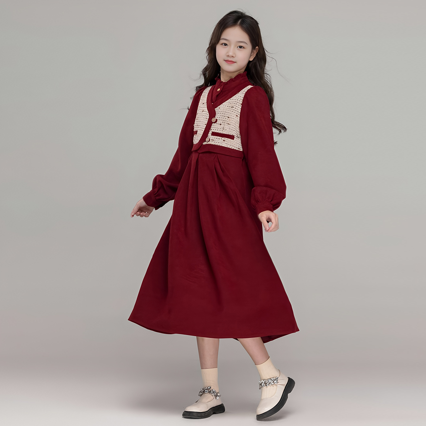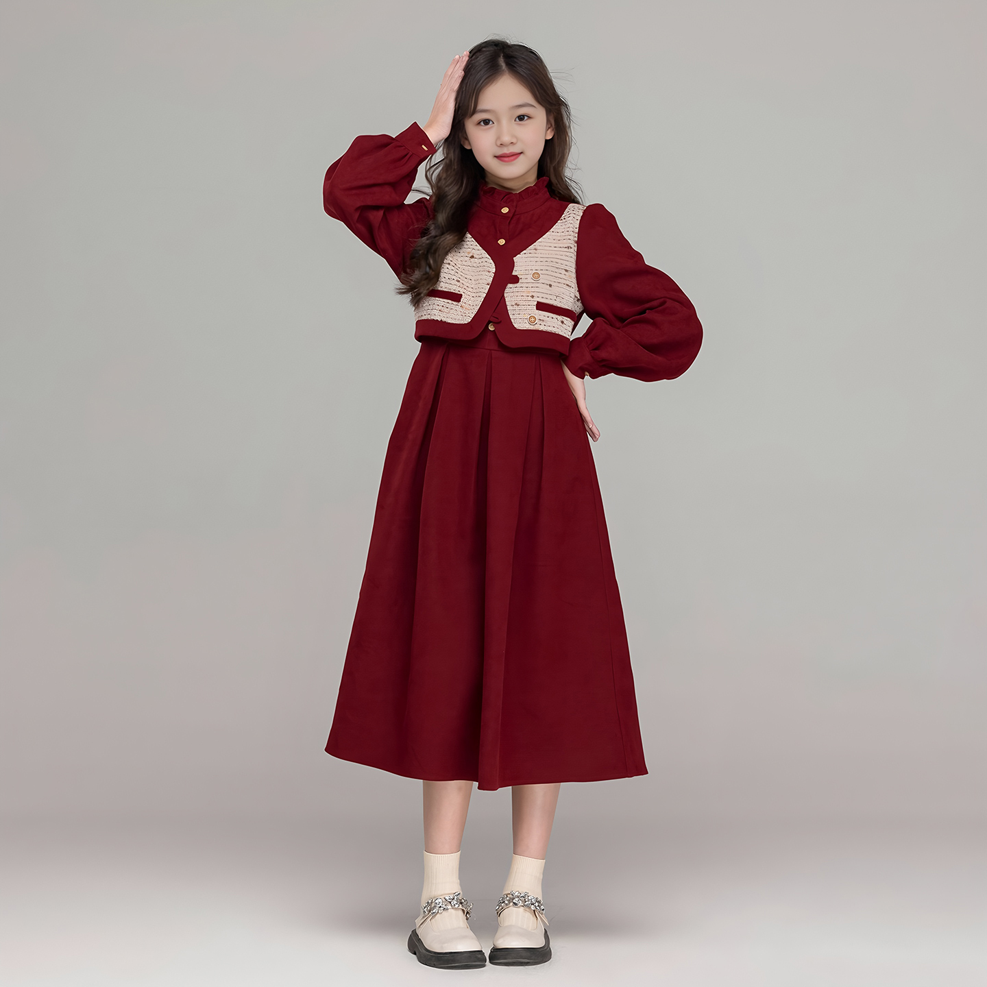 女童秋冬季连衣裙新款法式新年红色加绒公主裙儿童小香风气质裙子