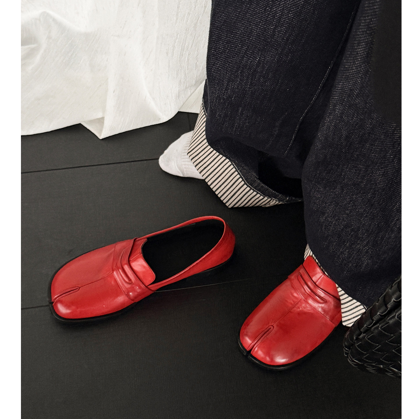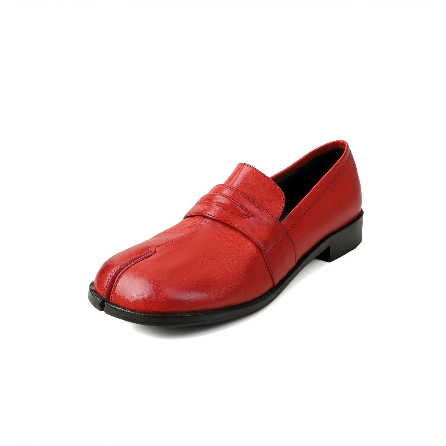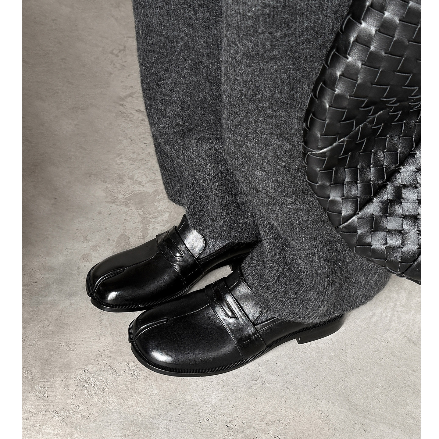 设计师分趾乐福鞋真皮百搭小皮鞋