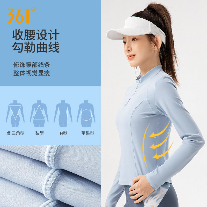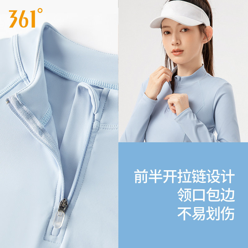 361运动上衣长袖春秋季半拉链瑜伽服蓝色专业跑步训练服健身服女