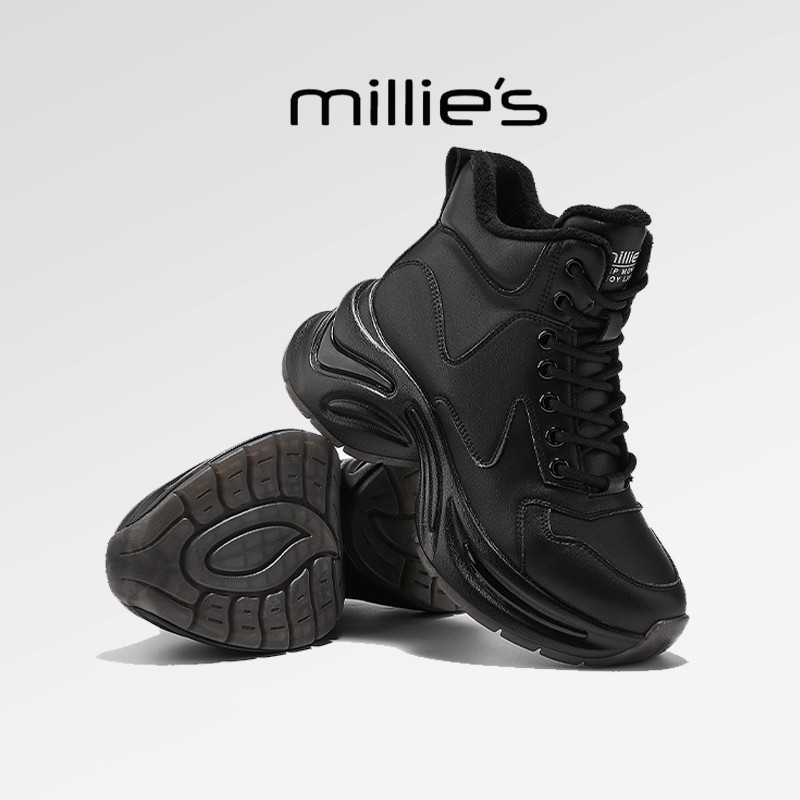 妙丽圆头高帮厚底工装鞋英伦风保暖棉绒复古拉链加绒雪地靴女冬季