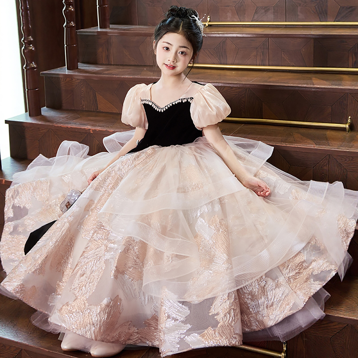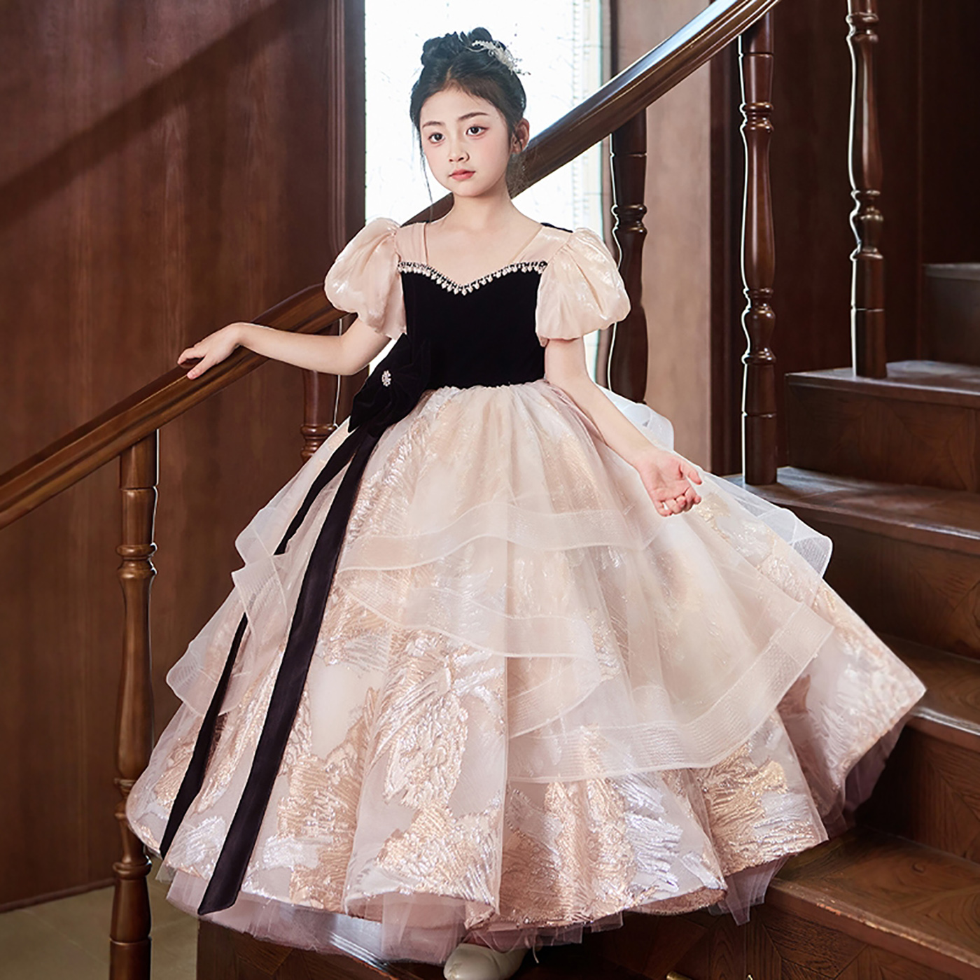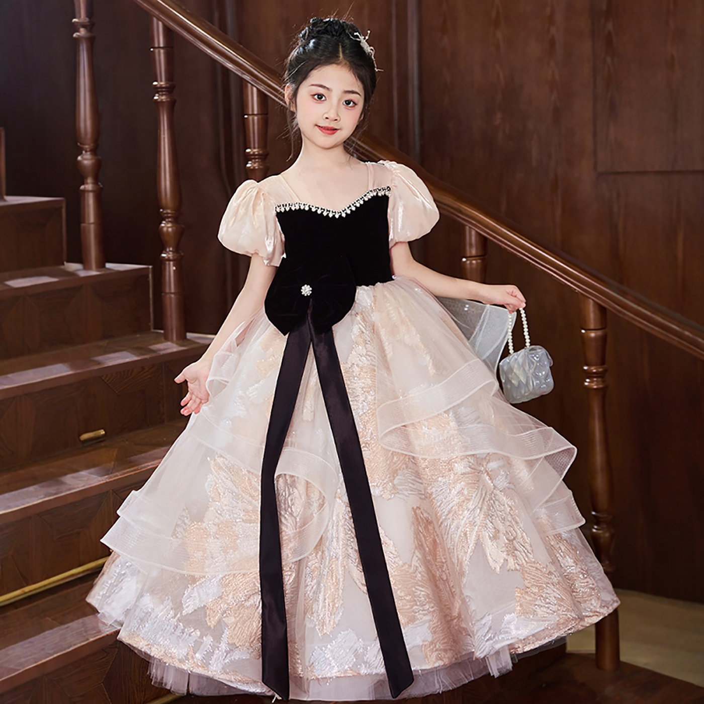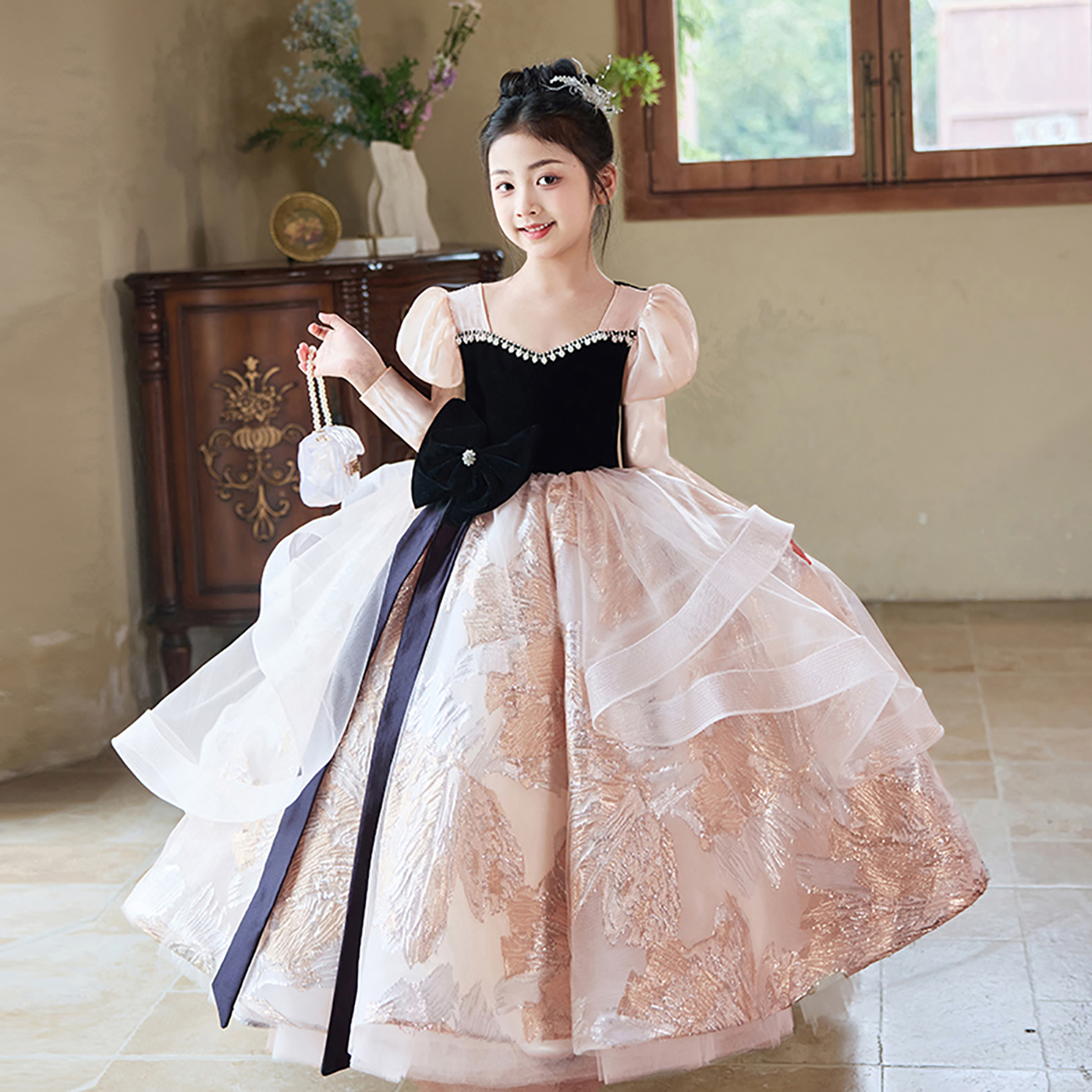 女童晚礼服轻奢小众高端花童小主持人钢琴演出儿童高级感公主裙秋