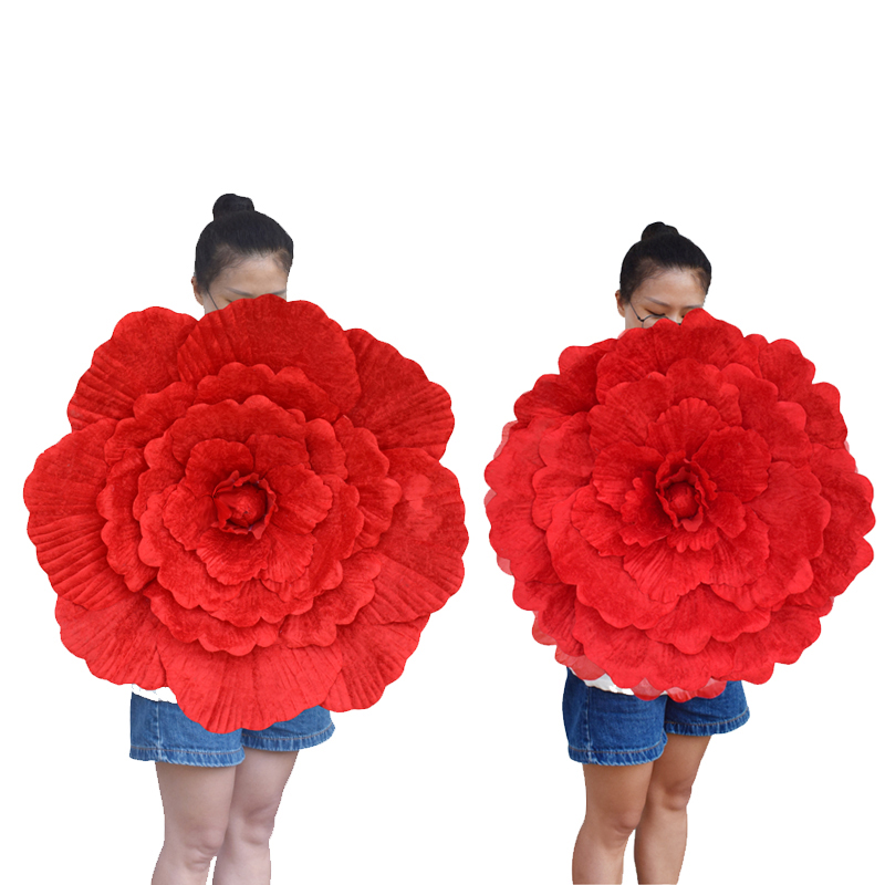 舞蹈大红花朵演出道具红色牡丹花手拿花幼儿园跳舞爱国表演大合唱