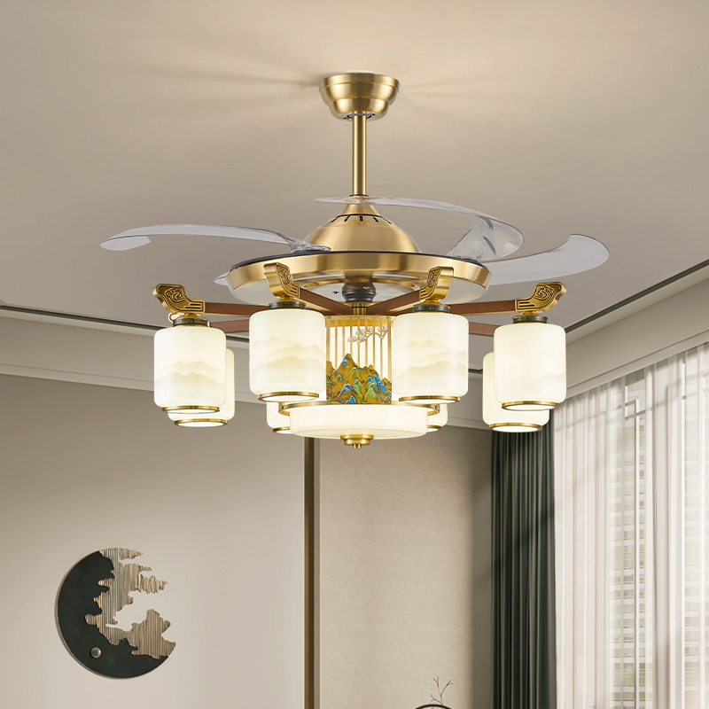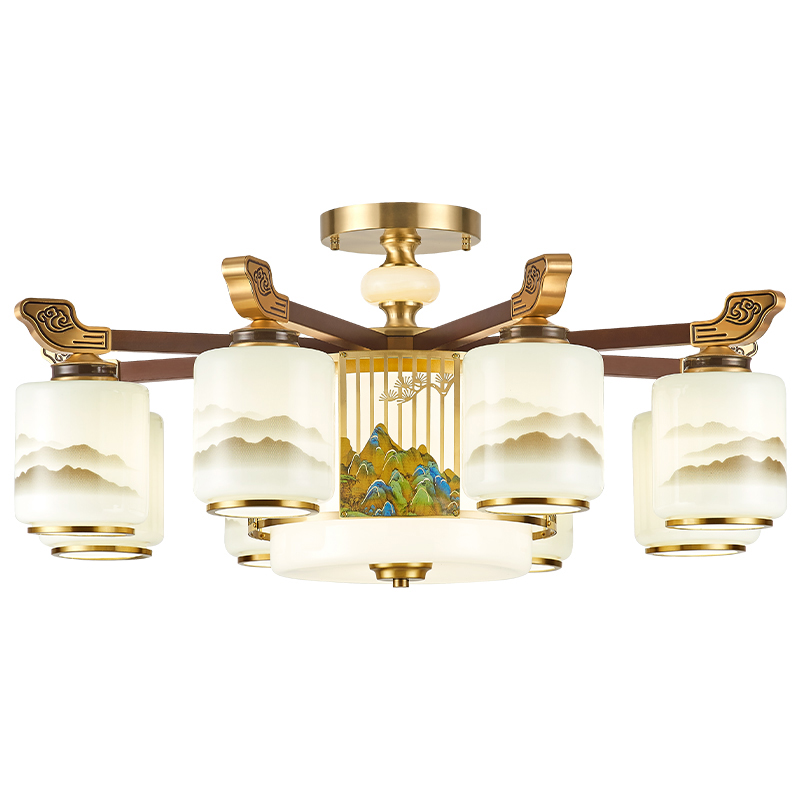 实木新中式客厅灯全铜吊灯自建房大厅主灯餐厅灯中山灯具套餐全屋