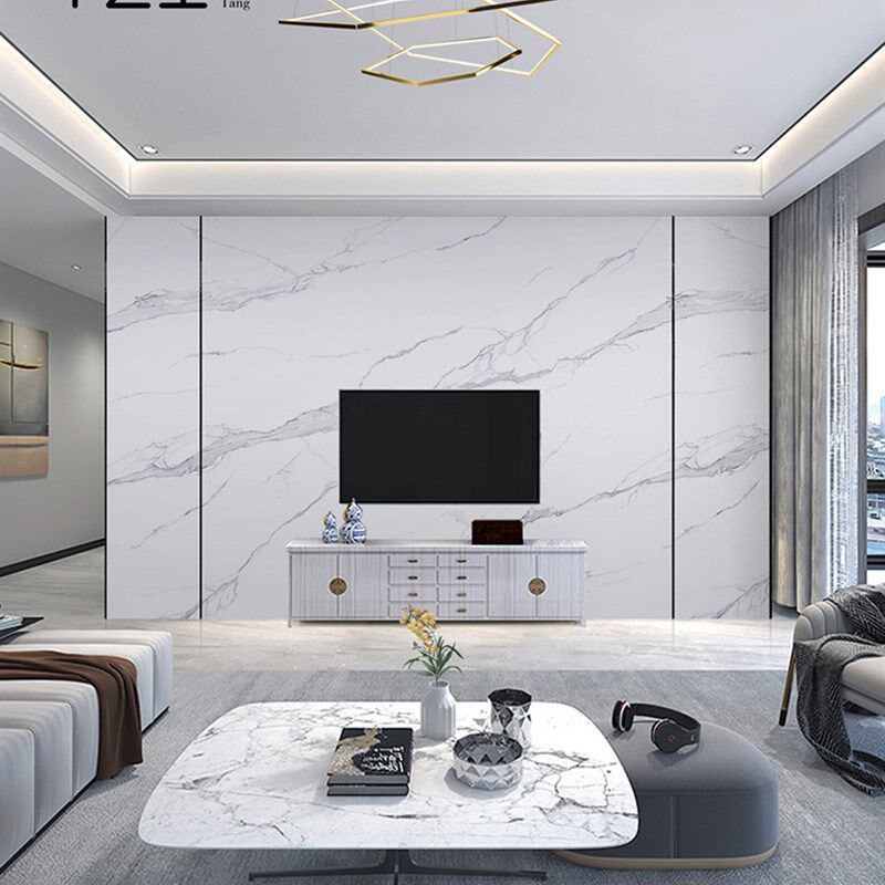 哑光岩板电视背景墙客厅全屋定制连纹瓷砖素色木纹装饰护墙板吧台