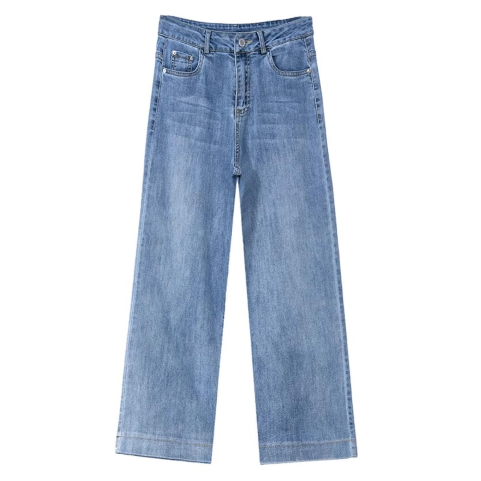 牛仔裤九分女裤子夏季2024年新款高腰直筒宽松矮个休闲垂感阔腿裤