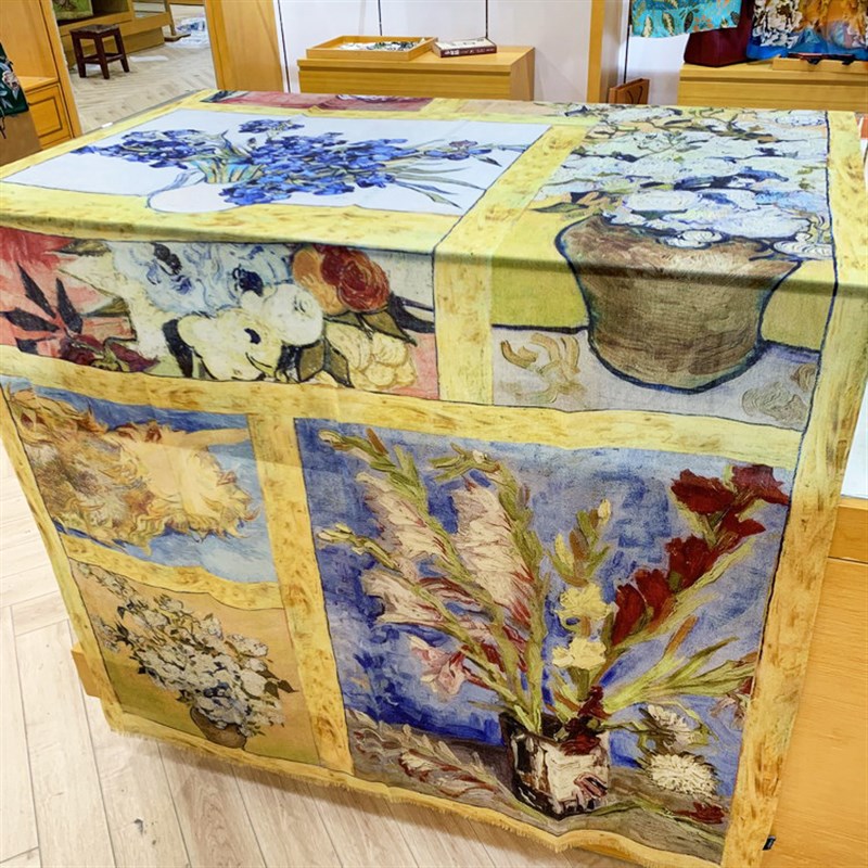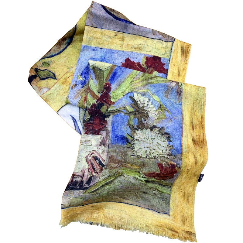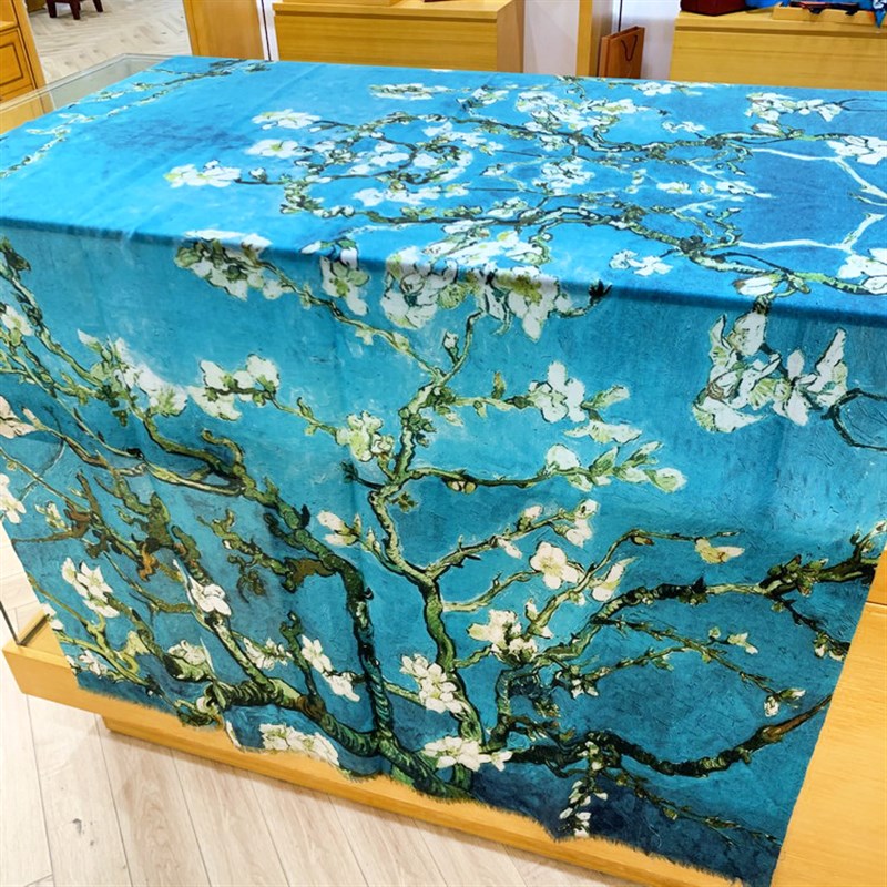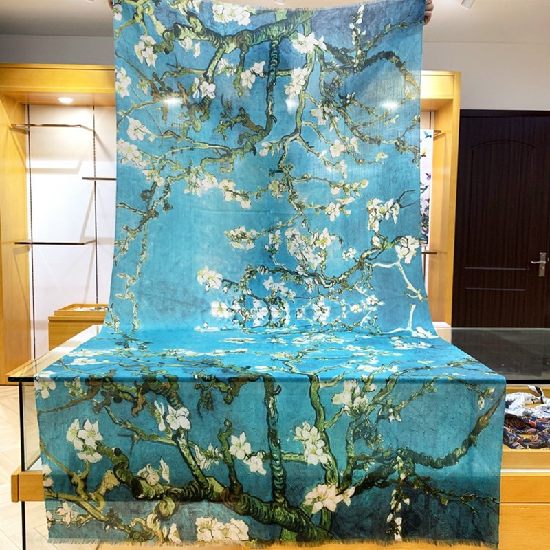 春秋薄款高端欧美行走的油t画梵高向日葵长款水溶羊毛围巾女多花