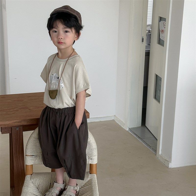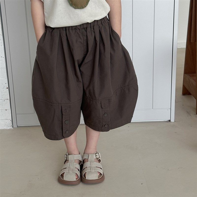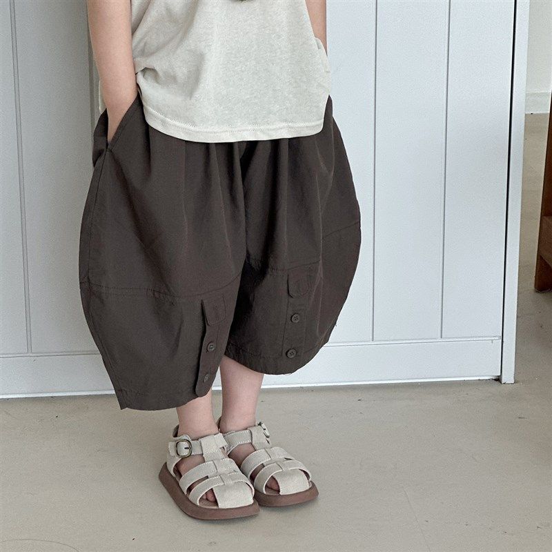 暮晨家新款夏装2025男童纯色棉布七分裤中小童宽松灯笼裤短裤中裤