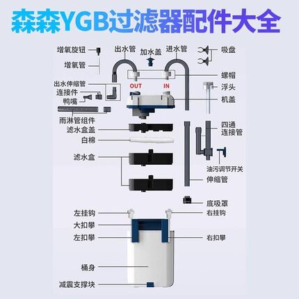 森森耀蓝配件YBG过滤器配件大全 底吸罩进水弯管出水鸭嘴浮头管件