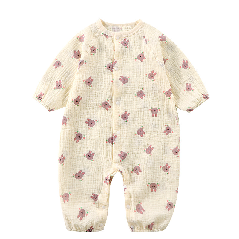 无骨棉纱连体衣新生婴儿可爱卡通爬服男女宝宝贴身哈衣春夏季