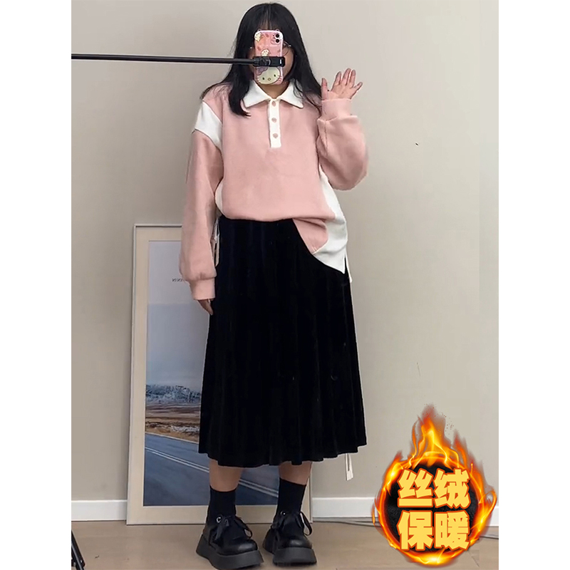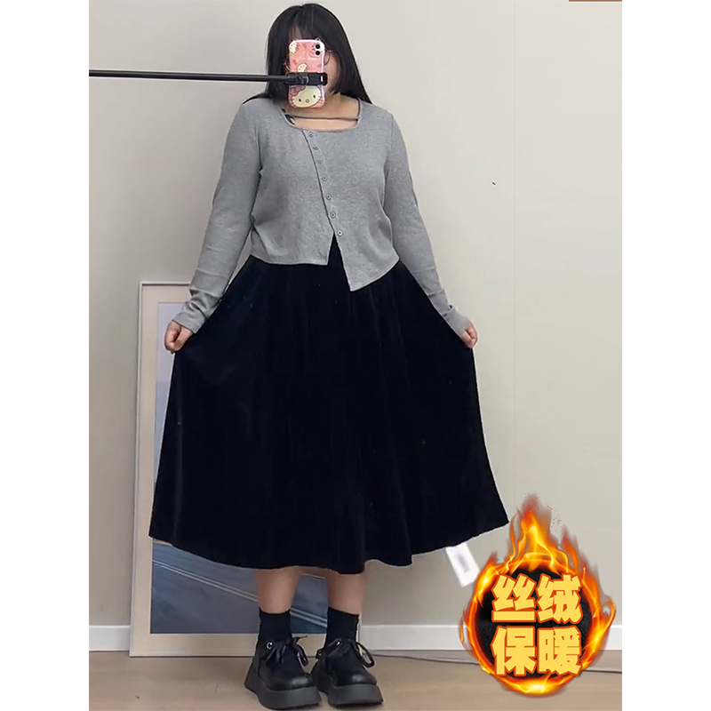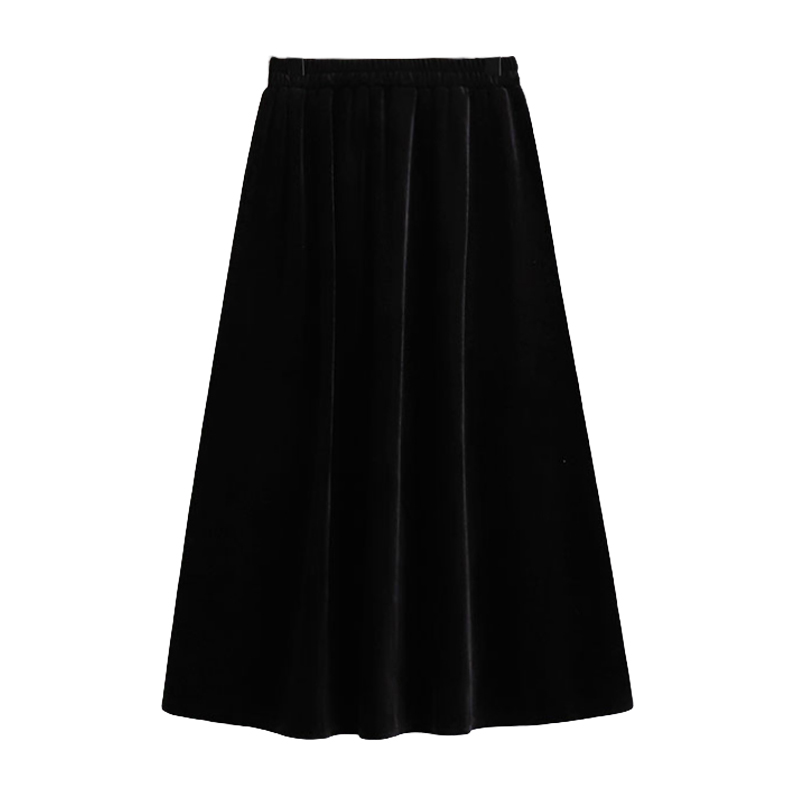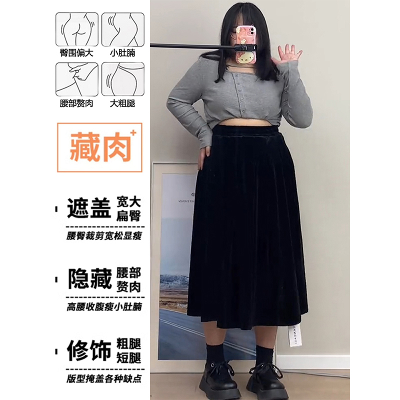 黑色金丝绒半身裙加绒保暖女秋冬大码中长款高腰垂感显瘦a字伞裙