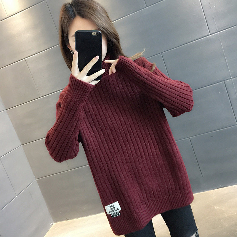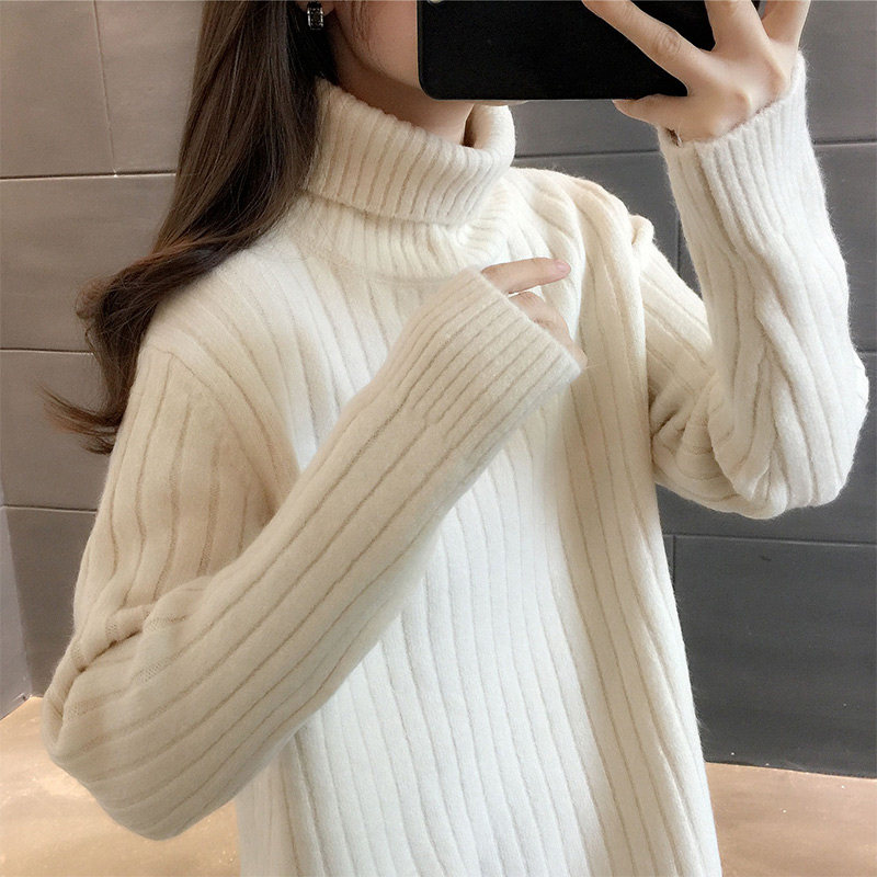 2025秋冬新款百搭高领毛衣女套头加厚保暖软糯系内搭中长款针织衫