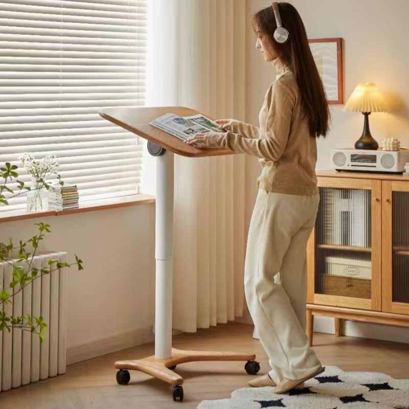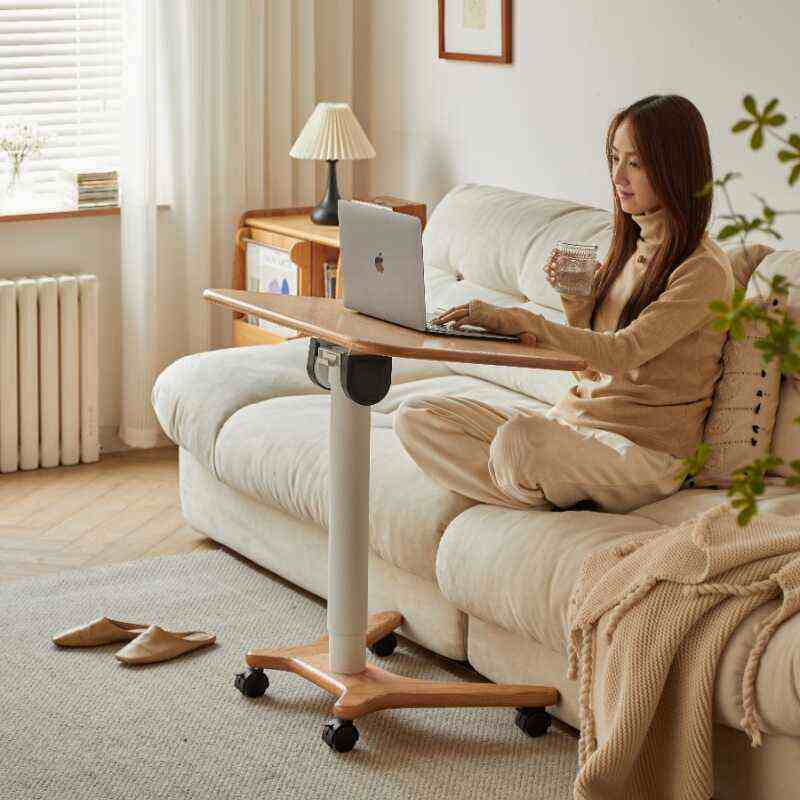 懒人书桌简约实木学习桌小户型卧室床边桌可移动沙发可升降电脑桌