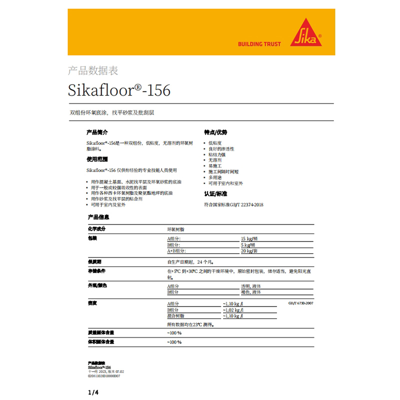 西卡156底漆Sikafloor-156双组份环氧底涂西卡156底漆西卡地坪漆