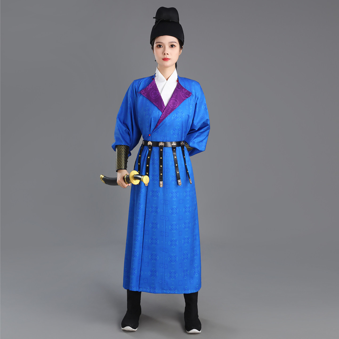 唐圆领袍女国风唐制汉服双面印花紫色襕衫长安的荔枝官服男女同款