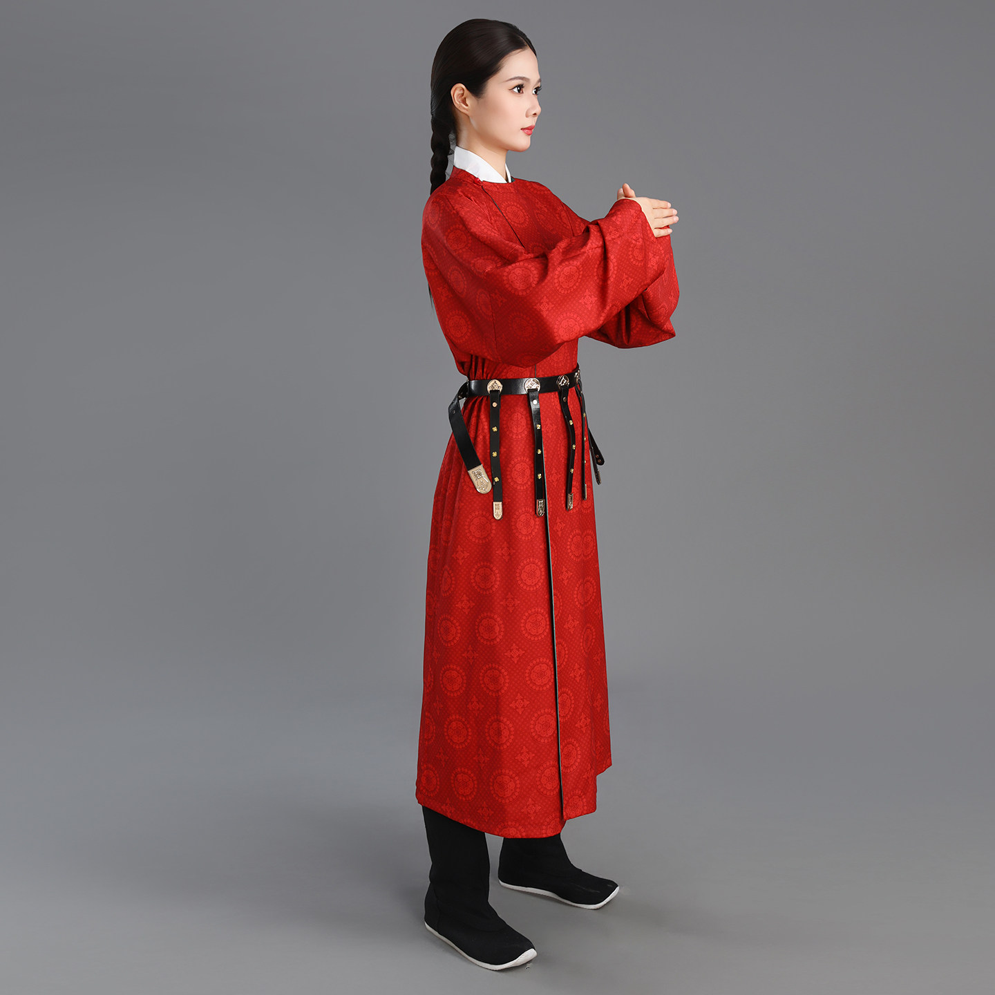 唐圆领袍女国风唐制汉服双面印花