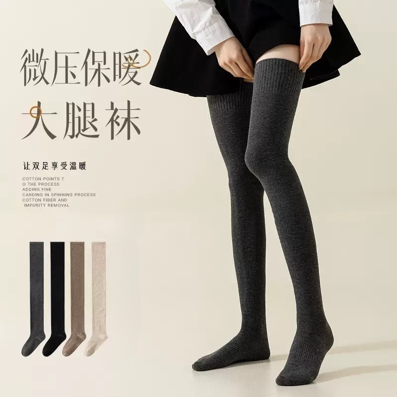 秋冬季加厚保暖护膝袜子女高筒袜子外穿瘦腿时尚毛圈长袜护膝膝盖