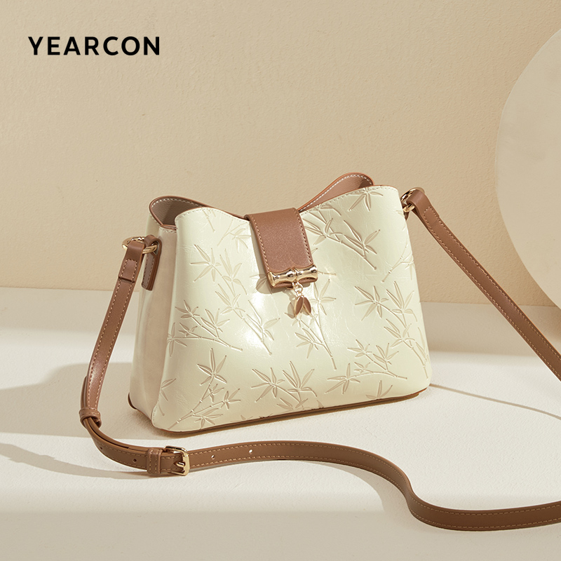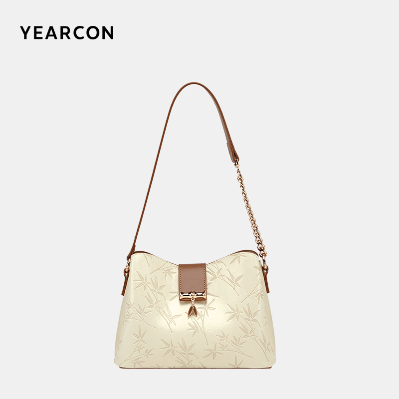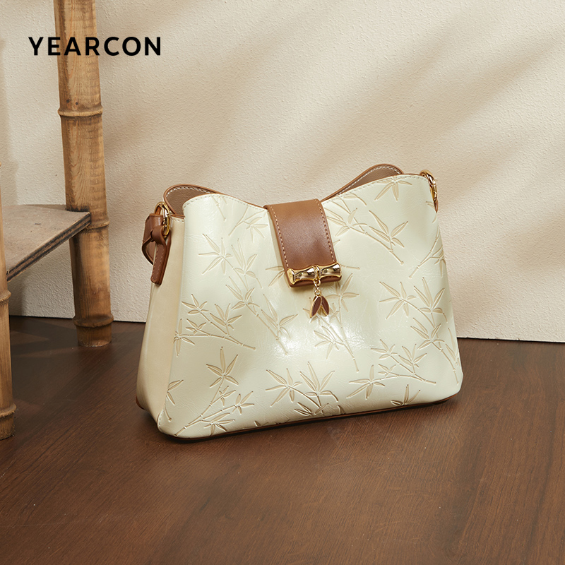 意尔康2025新款单肩斜挎包女包新中式高级妈妈包国风大容量水桶包