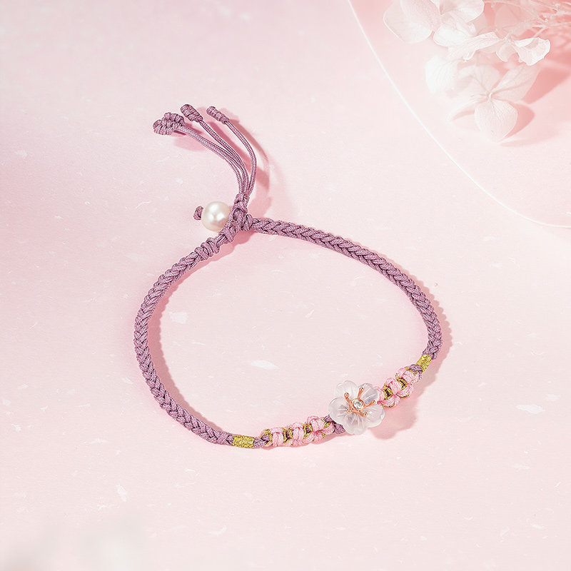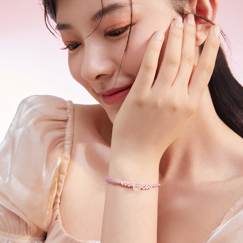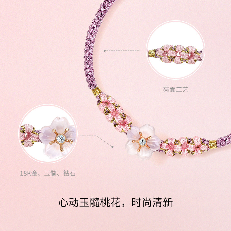 周六福天然钻石手链女18K金玉髓珍珠手串桃花喜欢璀璨节日礼物