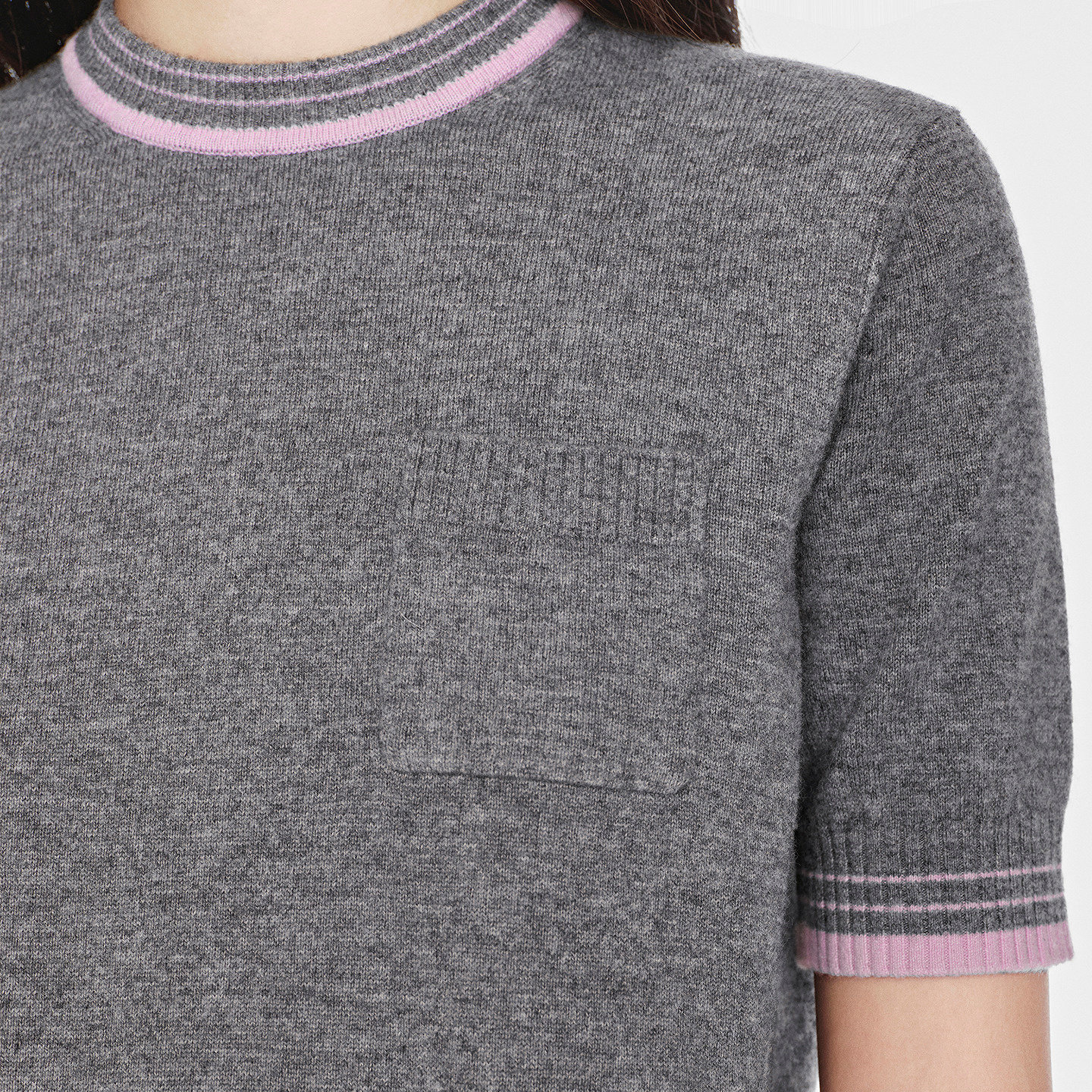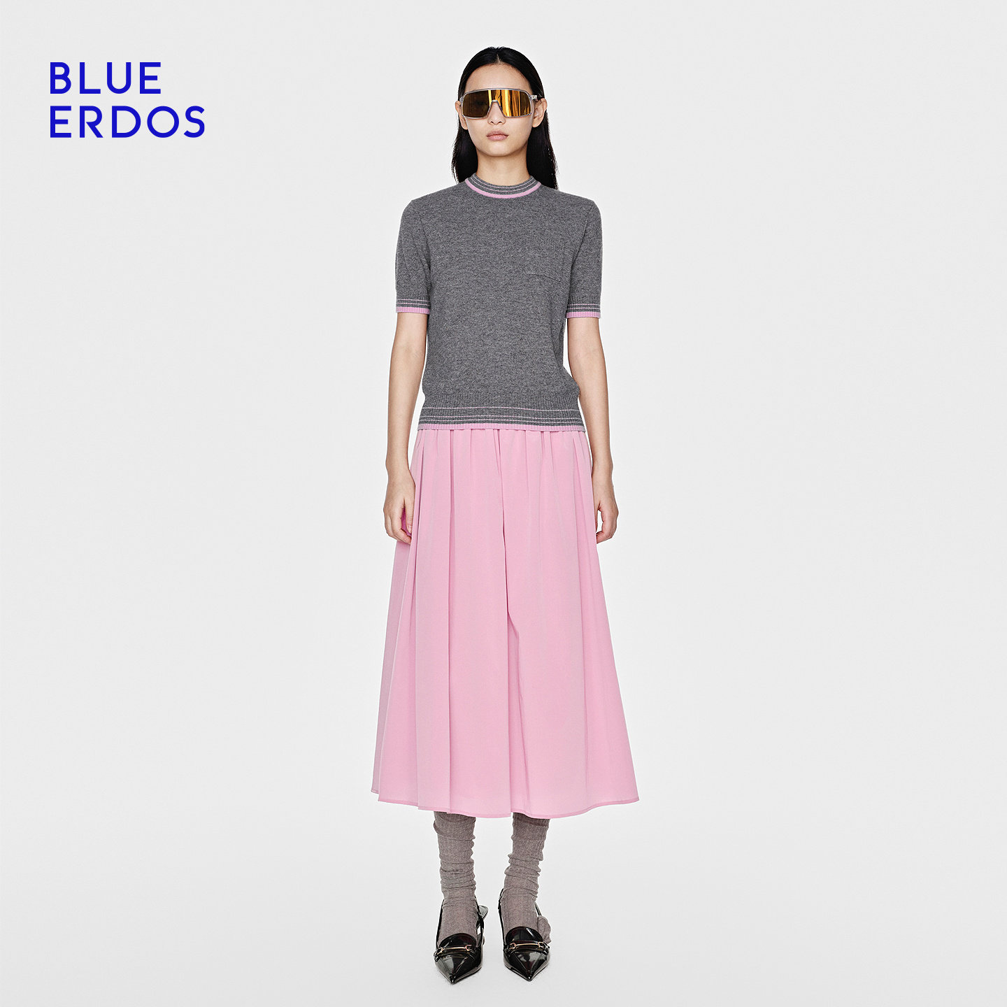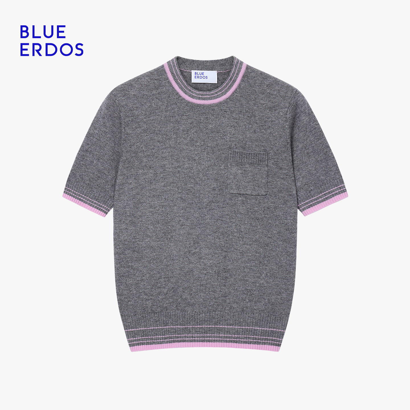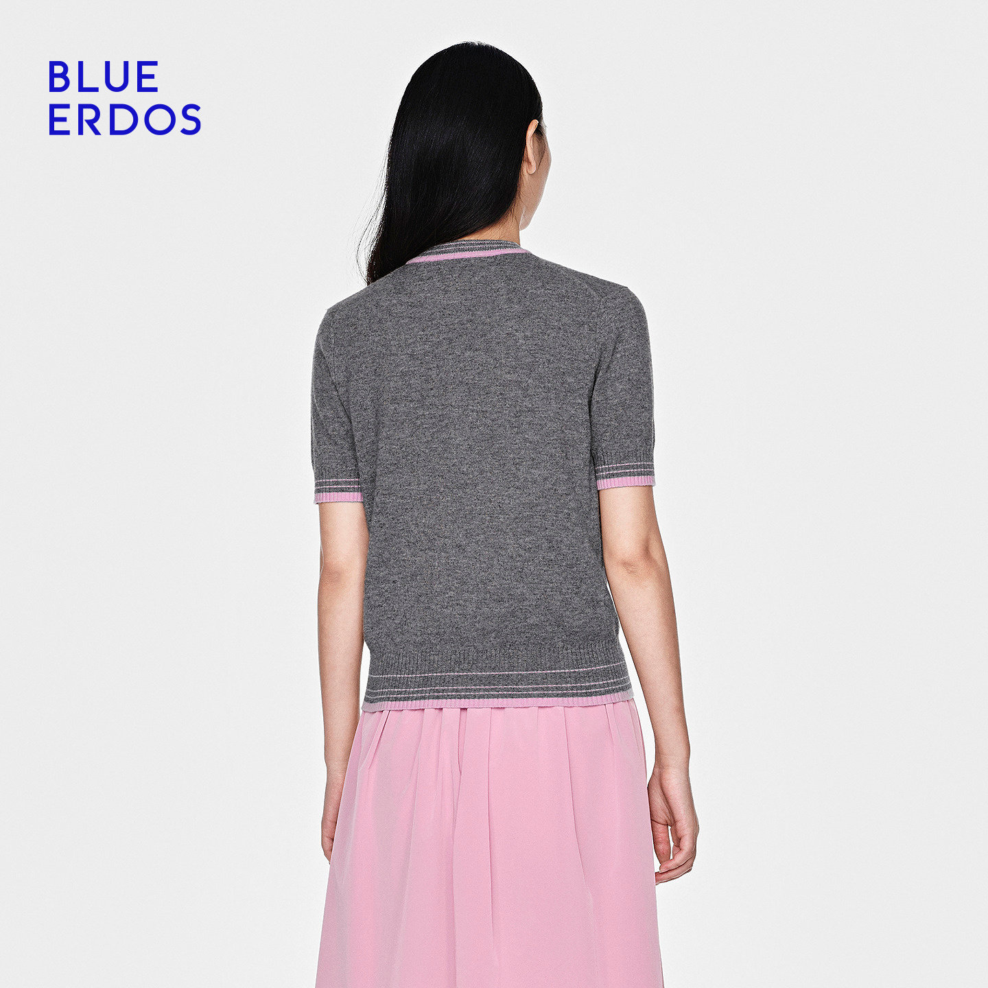 BLUE ERDOS26早春新品休闲百搭羊毛羊绒撞色圆领半袖针织衫女