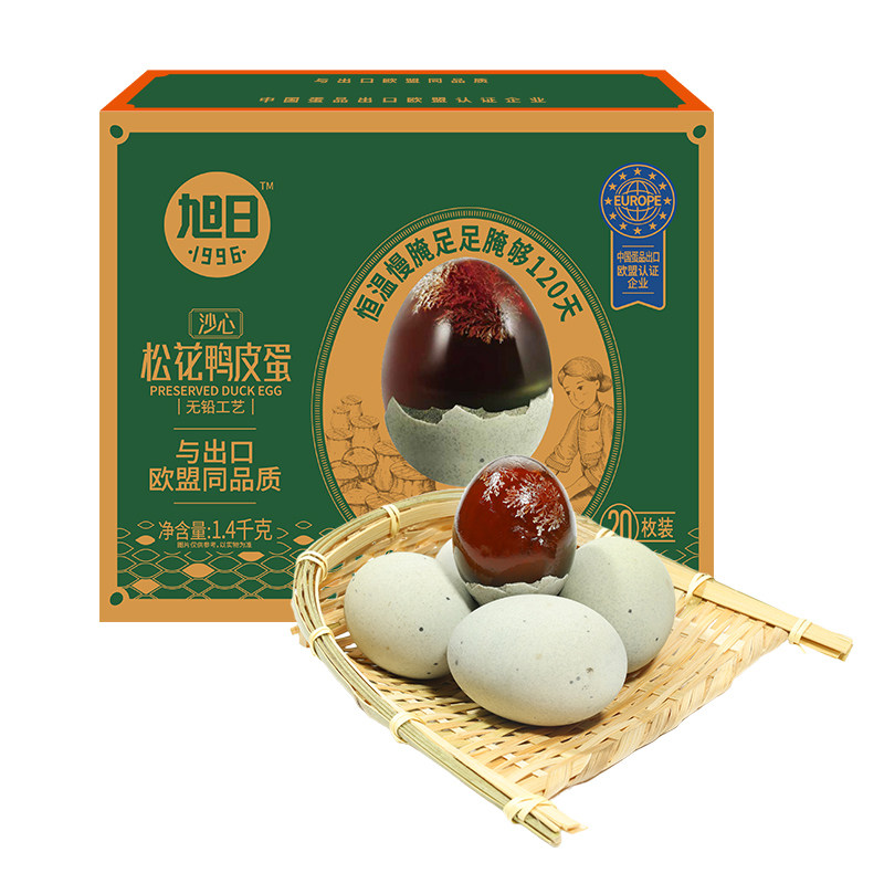 中秋礼盒旭日鸭皮蛋松花蛋无铅礼盒装20枚1400g特大松花皮蛋