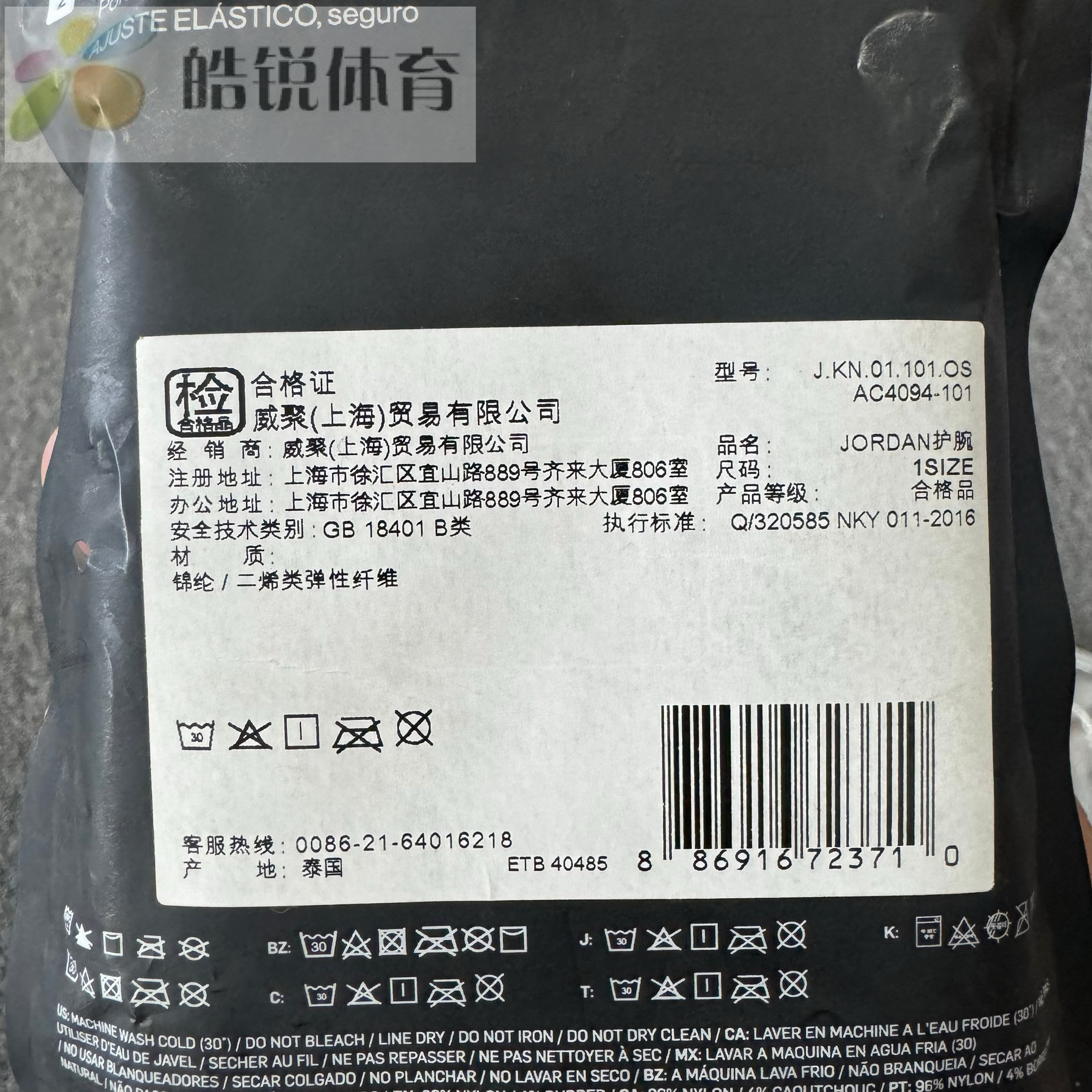 皓锐体育 耐克 Nike 男女篮球网球羽毛球吸汗运动护腕 AC4094-101