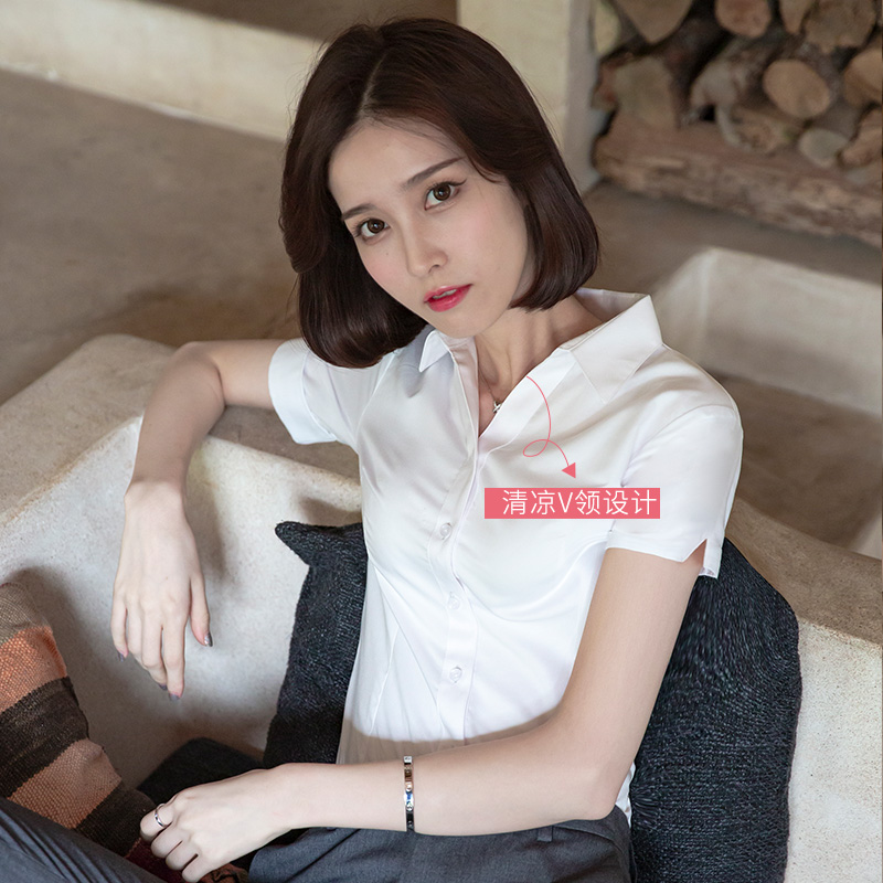 v领白衬衫女短袖2021夏季新款气质工作服上衣工装职业衬衣夏薄款