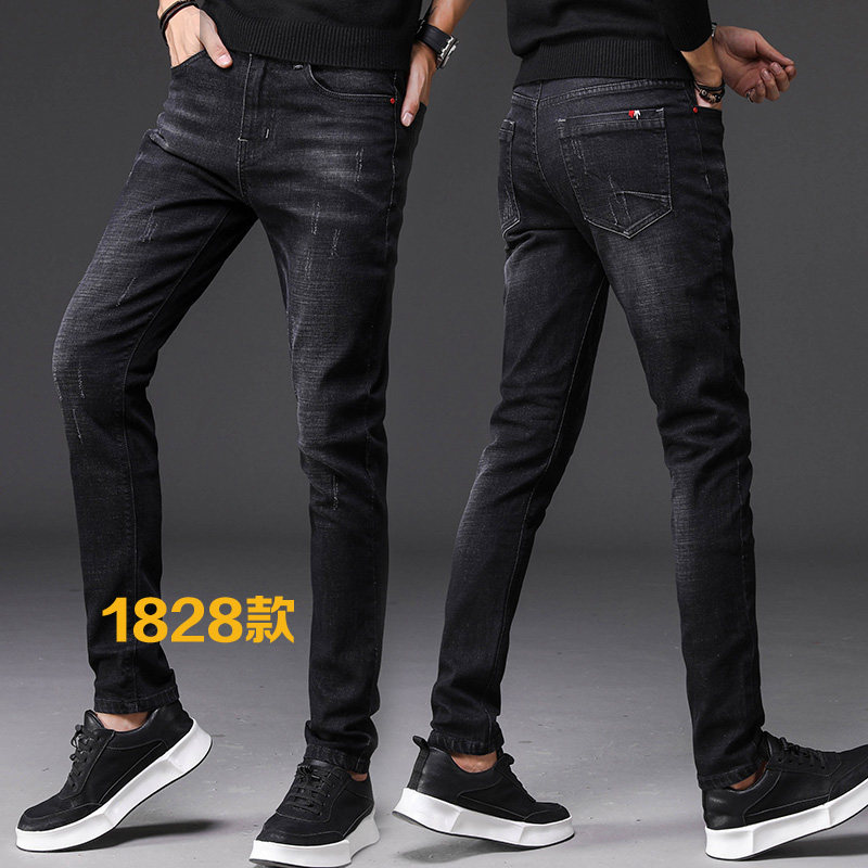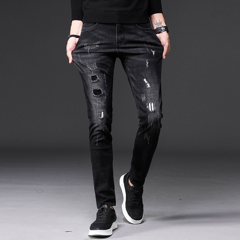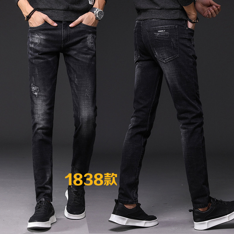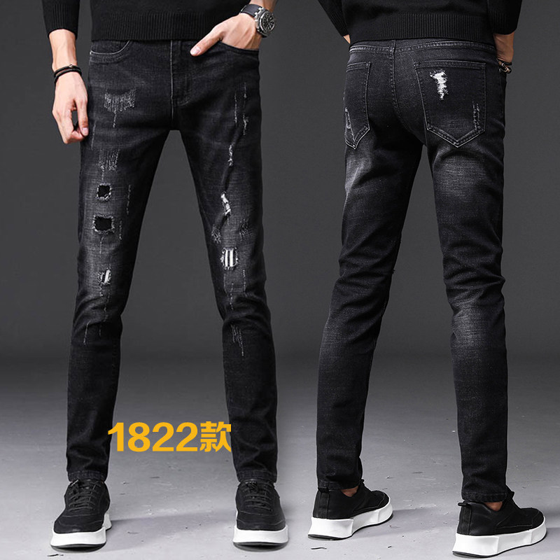 男士裤子黑色弹力秋冬牛仔裤男款小脚裤修身韩版潮流冬季百搭破洞