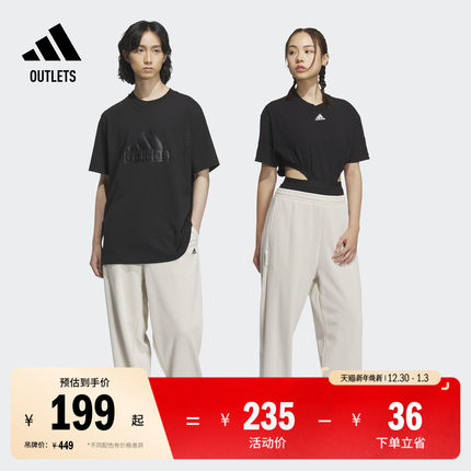 情侣款舒适毛圈直筒束脚运动裤男女adidas阿迪达斯轻运动