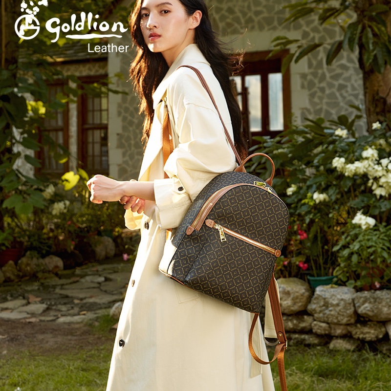 金利来摩登复古印花双肩包女士2025新款潮流百搭通勤小背包旅行包