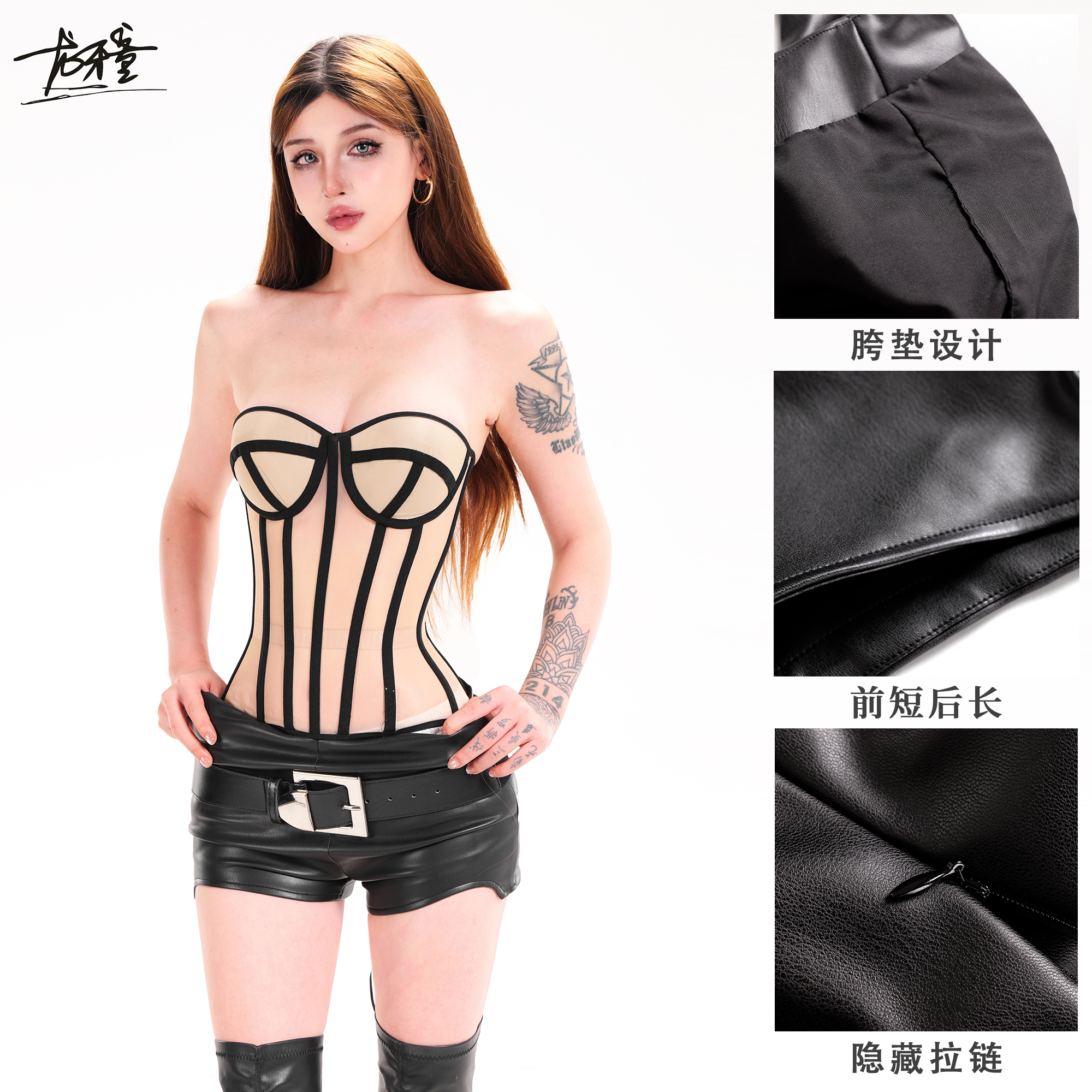 龙牙童推荐【V腰皮裤】美式辣妹高腰显瘦包臀皮裤性感百搭短裤修