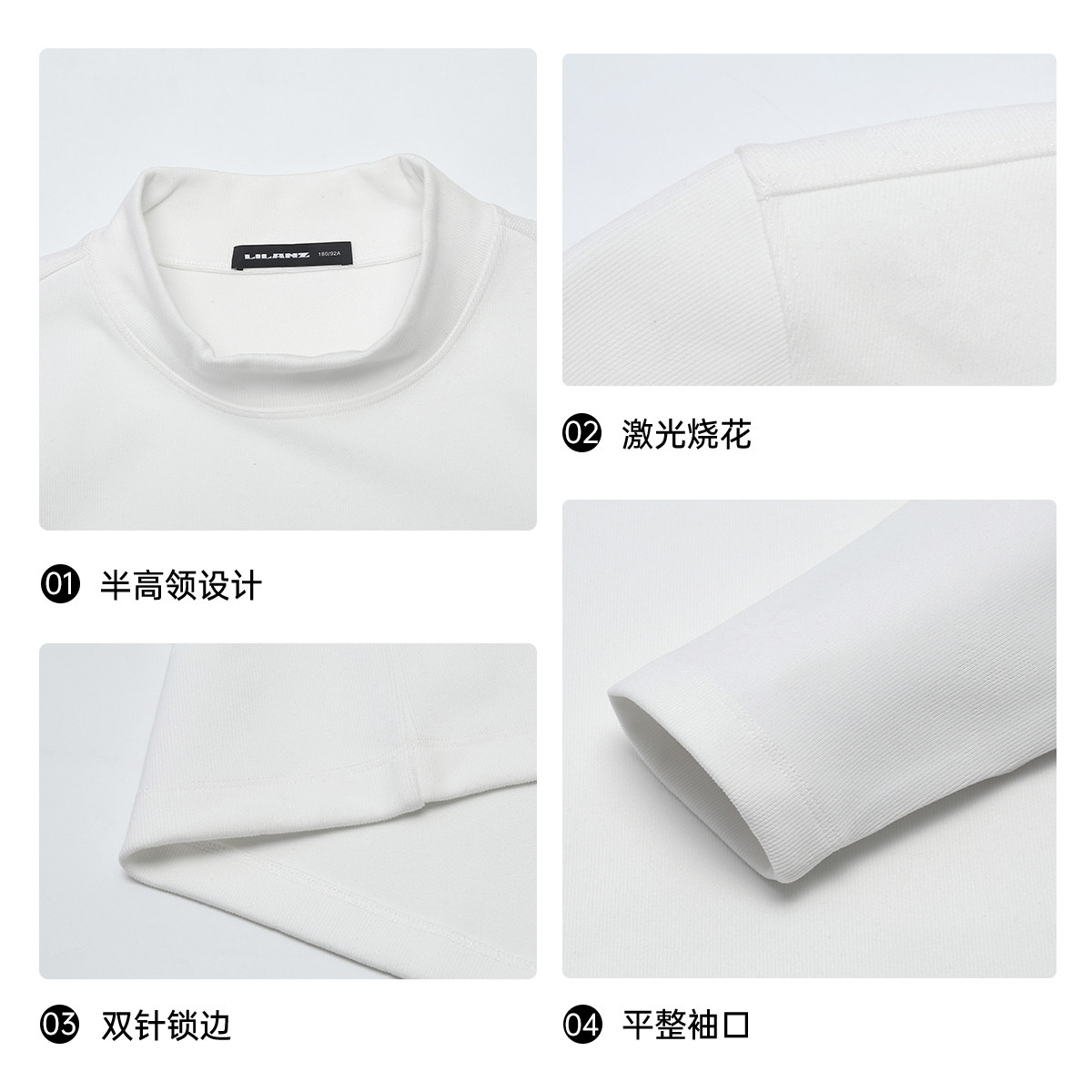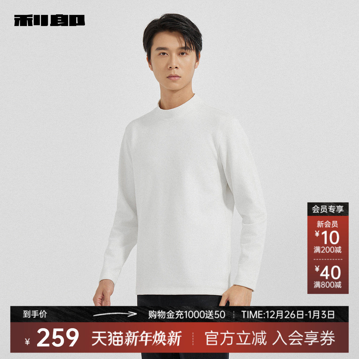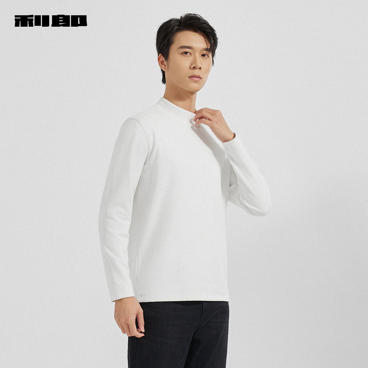 利郎官方半高领卫衣男2025冬季新款休闲男装白色修身保暖T恤上衣