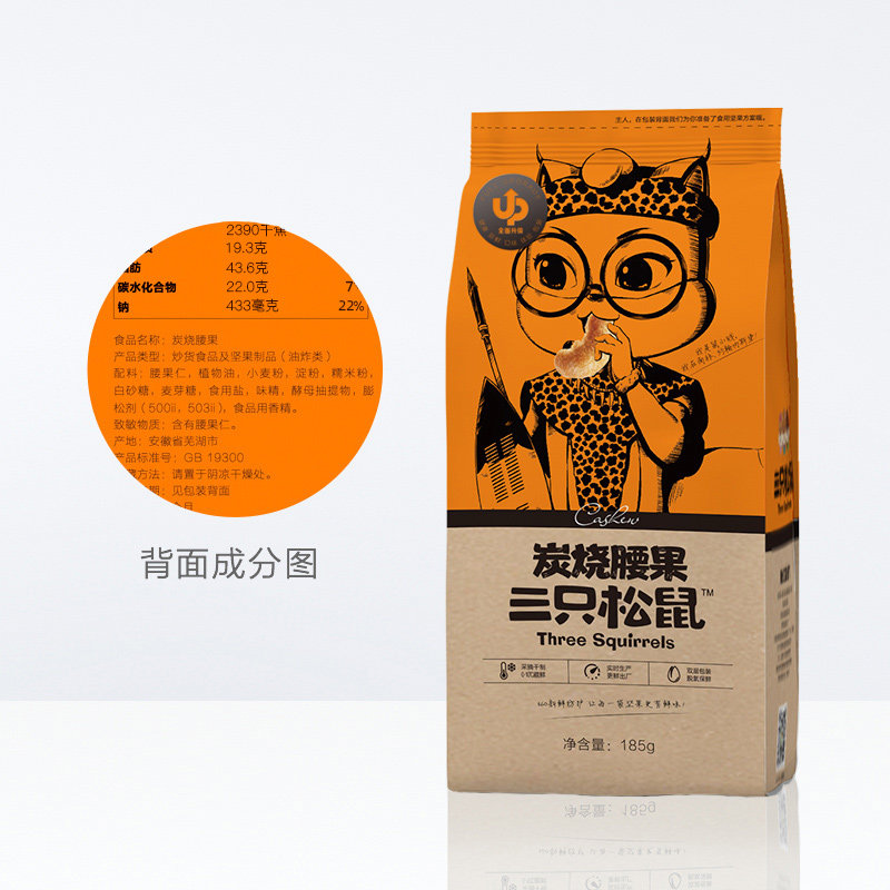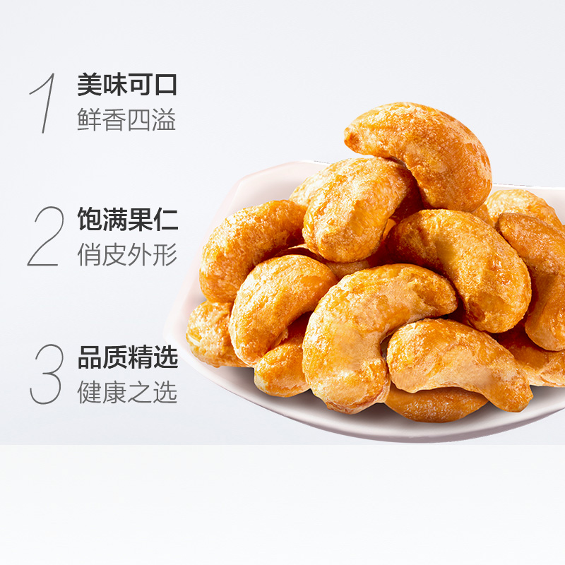 三只松鼠炭烧腰果185gx2袋零食坚果炒货干货干果腰果仁